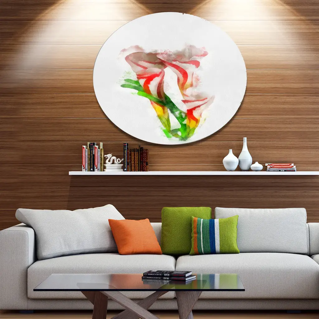Bring Contemporary Abstraction to your home with this large Circle Metal wall art. This Beautiful Bell Flower Watercolor Metal Artwork makes it the focal point of any room or office. - White Gloss Coating ensures colors are extra vibrant with light reflection.- Aluminum grade Sheet Metal with 1 inch mounting frame on the back giving the illusion that the artwork is floating on the wall..- Mounting Brackets are included along with instructions.- High Quality Digital images are created directly into a glossy aluminum panel producing a stunning and captivating print into the glossy finish of the metal.- Water, Fire and Scratch resistant HD Aluminum panels.- Looks better than any photo paper and guaranteed to last at least 20 years- Easy to clean with a microfiber cloth. Colors are far superior to regular Canvas Art. - Easy to Hang
