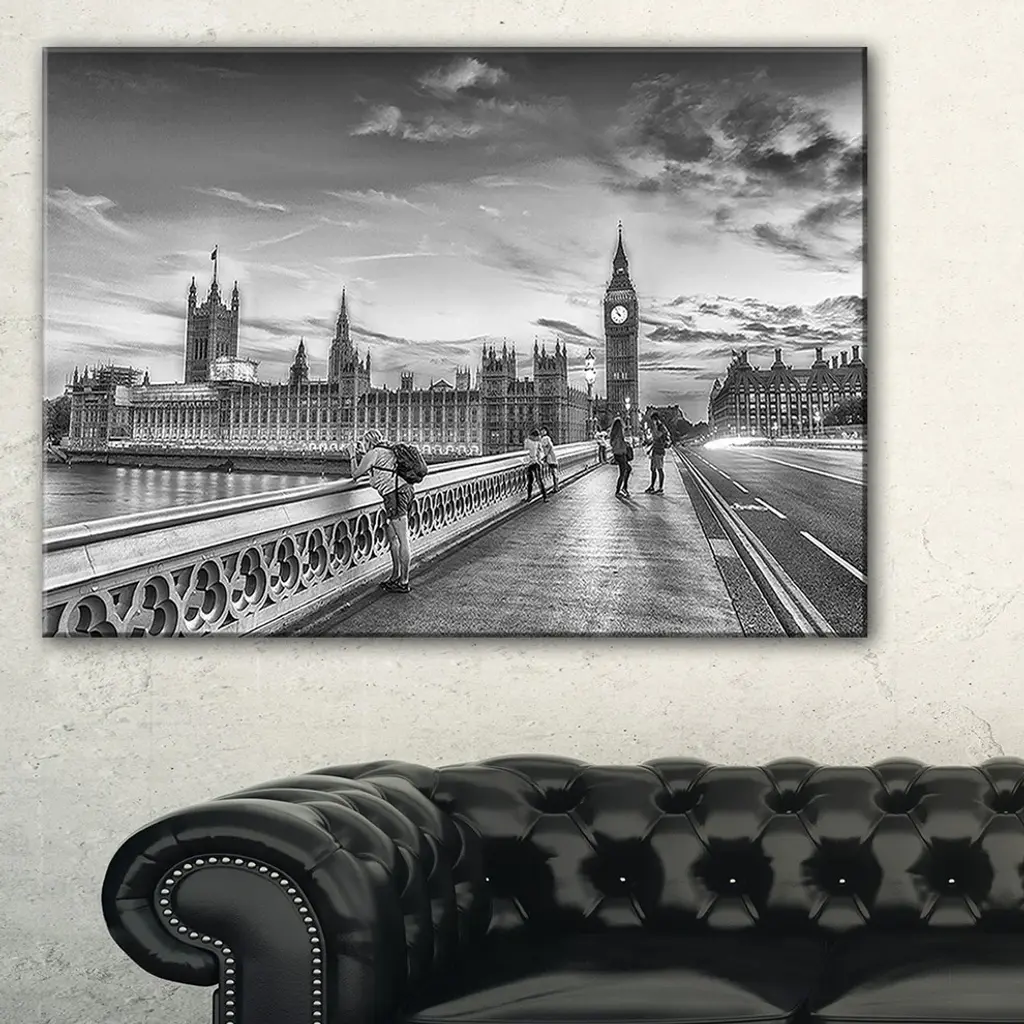 The Beautiful Black and White London View canvas art print is sure to make an impression on anyone who sees it. This artwork is gallery wrapped around a 1-inch solid wood frame and arrives carefully packaged and entirely ready to hang on the wall. Design Art only uses the highest resolution and pigments to ensure a crisp colorful print that is never faded or pixelated. This artwork is sure to be a conversation starter in any home or office.