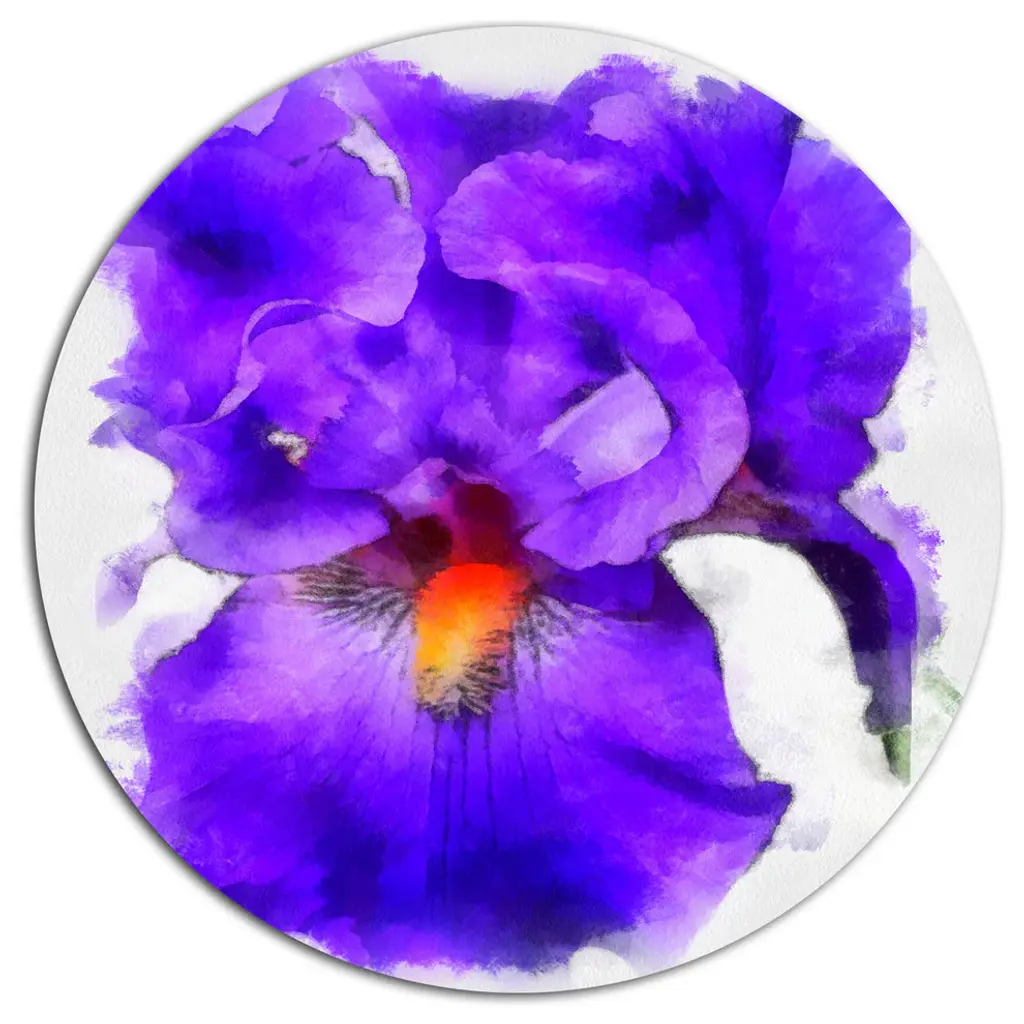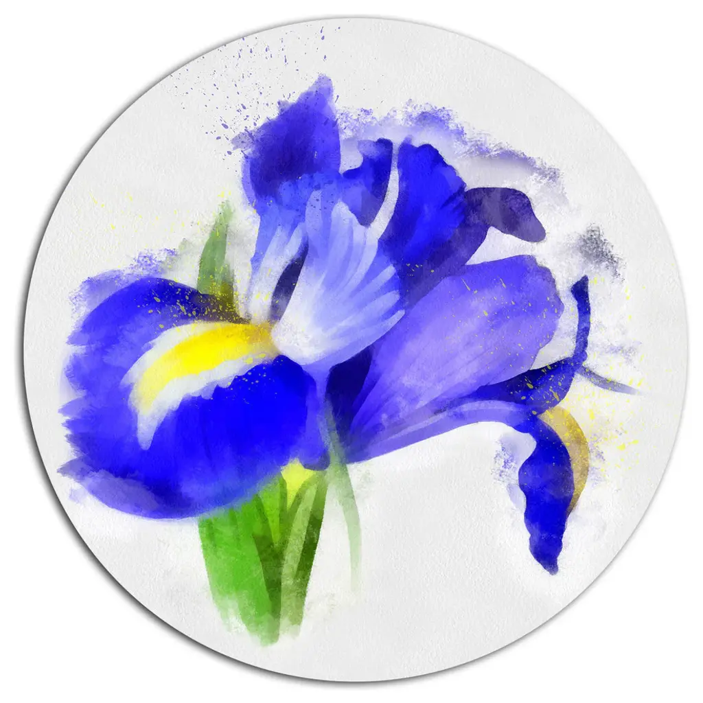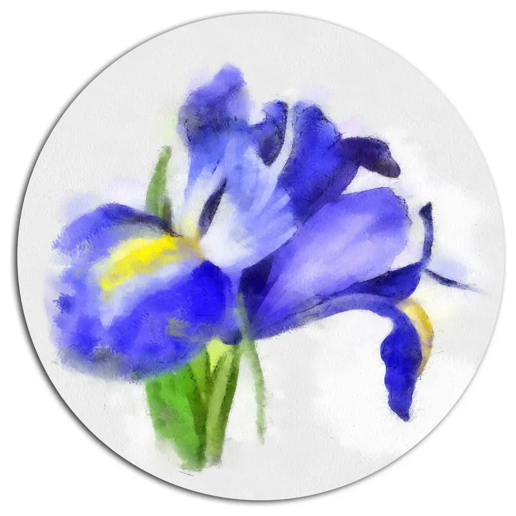 Beautiful Blue Iris Watercolor Sketch, Flower Round Metal Wall Art, 36"