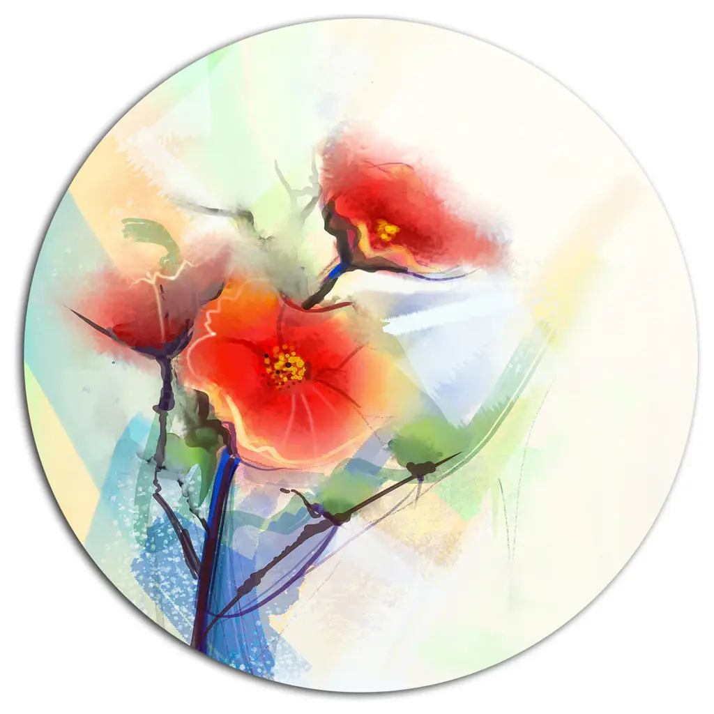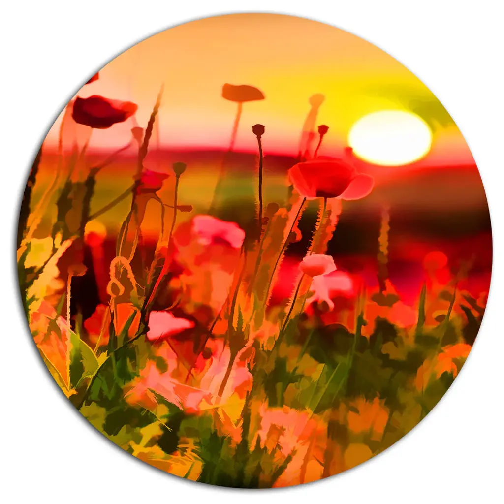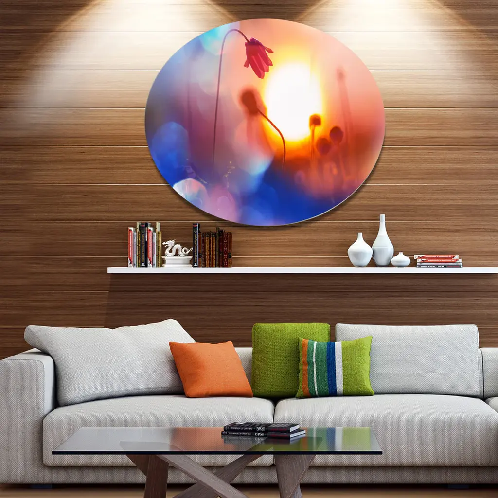 Bring Contemporary Abstraction to your home with this large Circle Metal wall art. This Beautiful Blurred Flowers At Sunset Metal Artwork makes it the focal point of any room or office. - White Gloss Coating ensures colors are extra vibrant with light reflection.- Aluminum grade Sheet Metal with 1 inch mounting frame on the back giving the illusion that the artwork is floating on the wall..- Mounting Brackets are included along with instructions.- High Quality Digital images are created directly into a glossy aluminum panel producing a stunning and captivating print into the glossy finish of the metal.- Water, Fire and Scratch resistant HD Aluminum panels.- Looks better than any photo paper and guaranteed to last at least 20 years- Easy to clean with a microfiber cloth. Colors are far superior to regular Canvas Art. - Easy to Hang