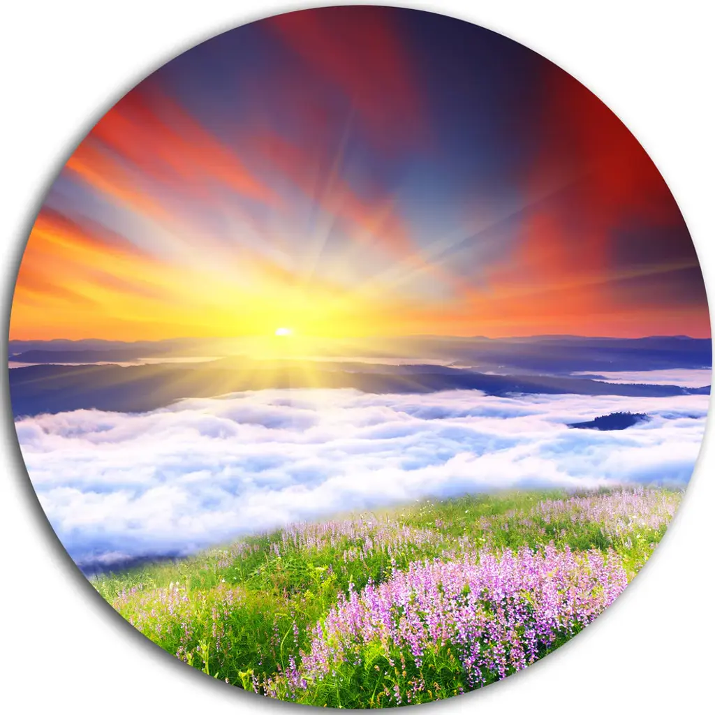 Beautiful Circled Flower Fields, Floral Wall Disc Metal Wall Art, 11"