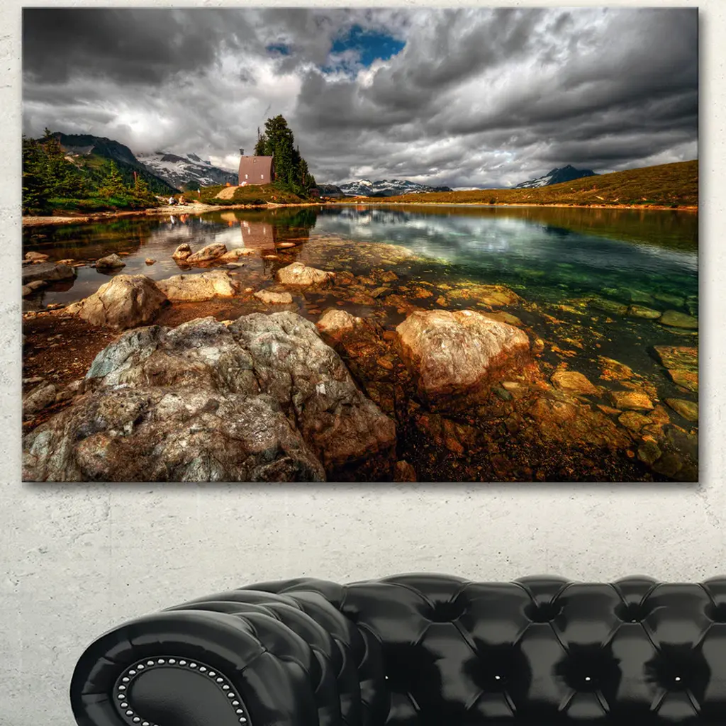 Beautiful Clear Mountain Lake, Landscape Canvas Art Print, 60"x28"