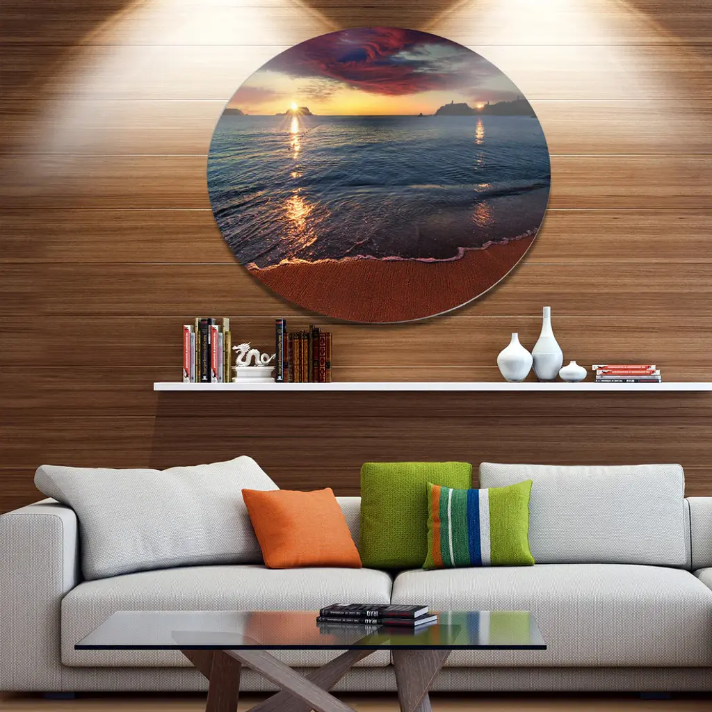 Beautiful Clear Seashore At Sunset, Seashore Disc Metal Wall Art, 36"