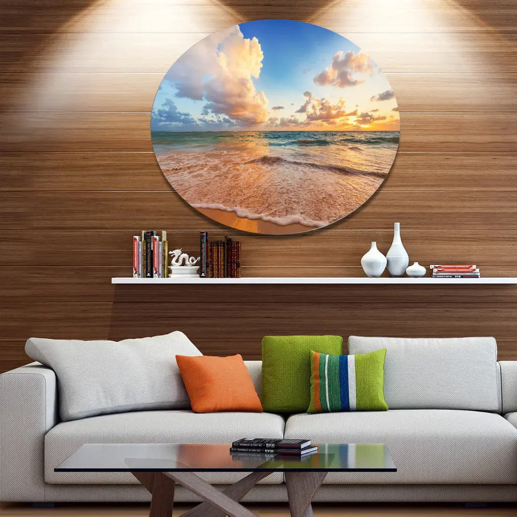 Beautiful Cloudscape Over Beach, Beach Round Wall Art, 11"