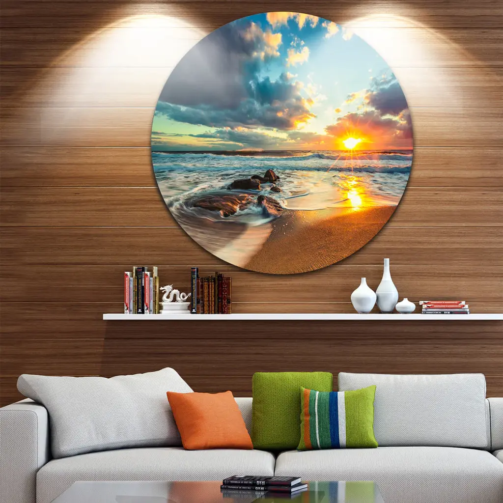 Beautiful Cloudscape Over The Sea, Modern Beach Round Wall Art, 36"
