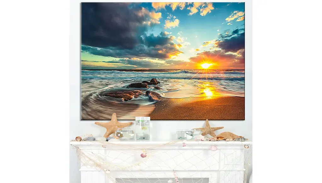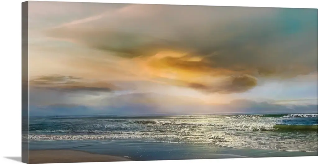 The Beautiful Cloudscape over the Sea canvas art print is sure to make an impression on anyone who sees it. This artwork is gallery wrapped around a 1-inch solid wood frame and arrives carefully packaged and entirely ready to hang on the wall. Design Art only uses the highest resolution and pigments to ensure a crisp colorful print that is never faded or pixelated. This artwork is sure to be a conversation starter in any home or office.