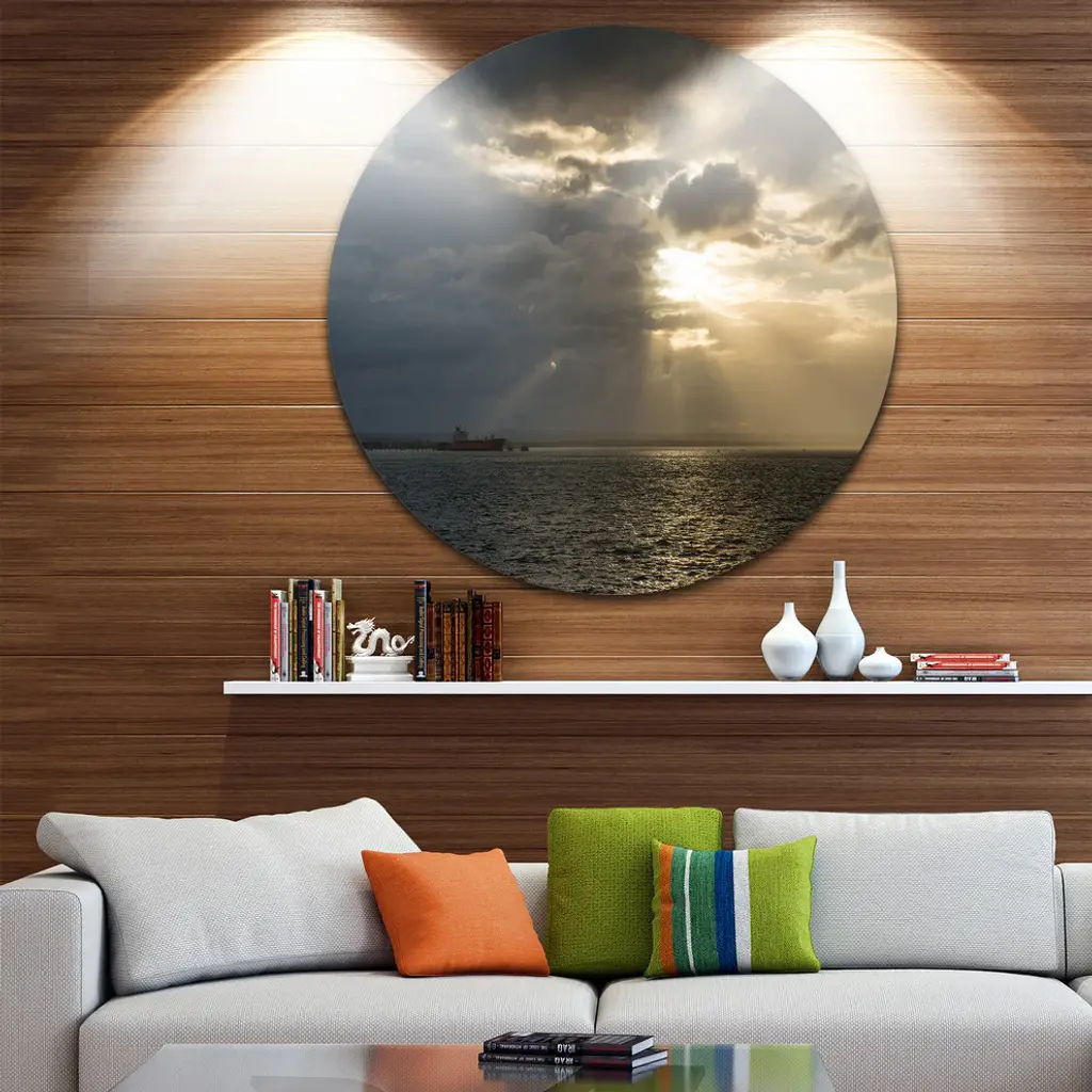 Bring Contemporary Abstraction to your home with this large Circle Metal wall art. This Beautiful Cloudy Sunset at Australia Beach Metal Artwork makes it the focal point of any room or office. - White Gloss Coating ensures colors are extra vibrant with light reflection.- Aluminum grade Sheet Metal with 1 inch mounting frame on the back giving the illusion that the artwork is floating on the wall..- Mounting Brackets are included along with instructions.- High Quality Digital images are created directly into a glossy aluminum panel producing a stunning and captivating print into the glossy finish of the metal.- Water, Fire and Scratch resistant HD Aluminum panels.- Looks better than any photo paper and guaranteed to last at least 20 years- Easy to clean with a microfiber cloth. Colors are far superior to regular Canvas Art. - Easy to Hang