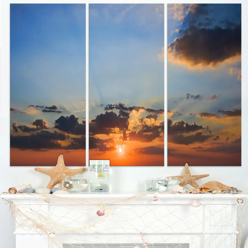 "Beautiful Cloudy Sunset Panorama" Metal Wall Art, 3 Panels, 36"x28"
