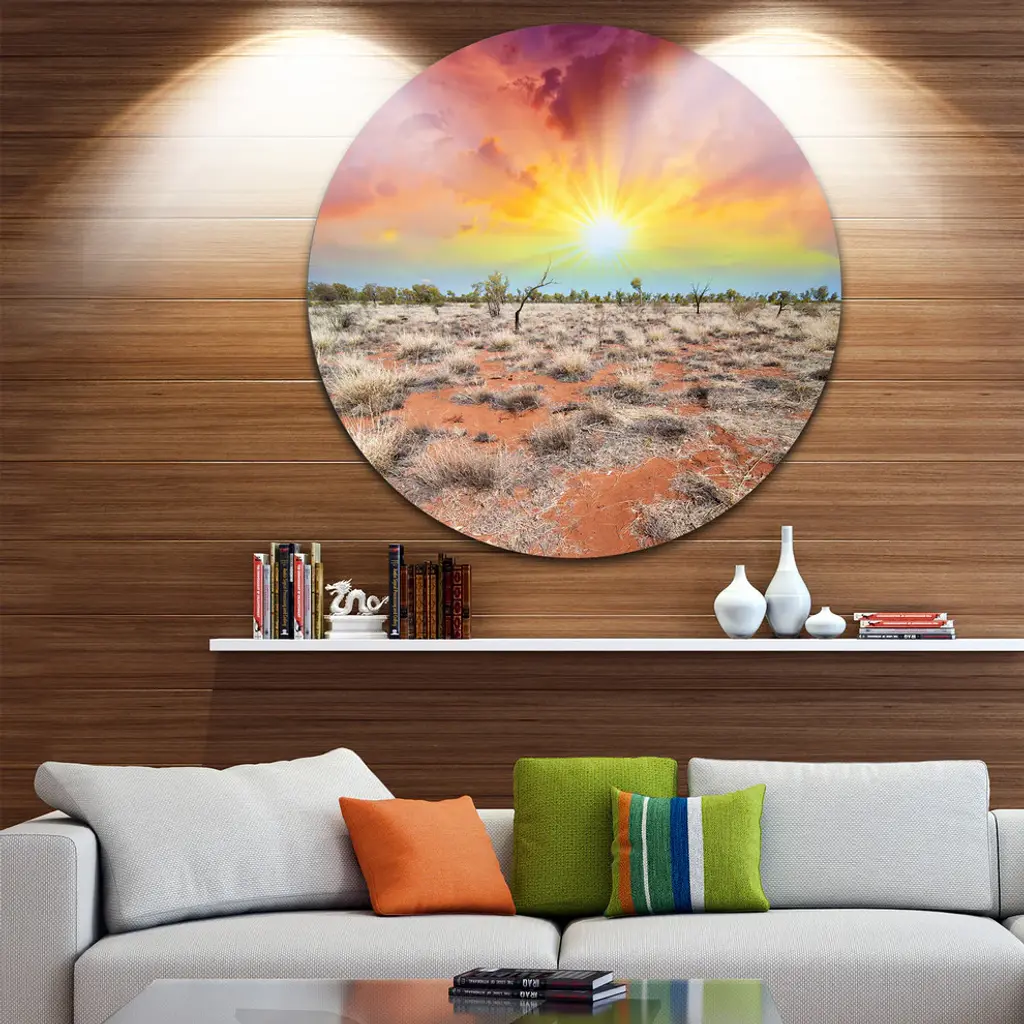 Bring Contemporary Abstraction to your home with this large Circle Metal wall art. This Beautiful Colors of Earth Metal Artwork makes it the focal point of any room or office. - White Gloss Coating ensures colors are extra vibrant with light reflection.- Aluminum grade Sheet Metal with 1 inch mounting frame on the back giving the illusion that the artwork is floating on the wall..- Mounting Brackets are included along with instructions.- High Quality Digital images are created directly into a glossy aluminum panel producing a stunning and captivating print into the glossy finish of the metal.- Water, Fire and Scratch resistant HD Aluminum panels.- Looks better than any photo paper and guaranteed to last at least 20 years- Easy to clean with a microfiber cloth. Colors are far superior to regular Canvas Art. - Easy to Hang
