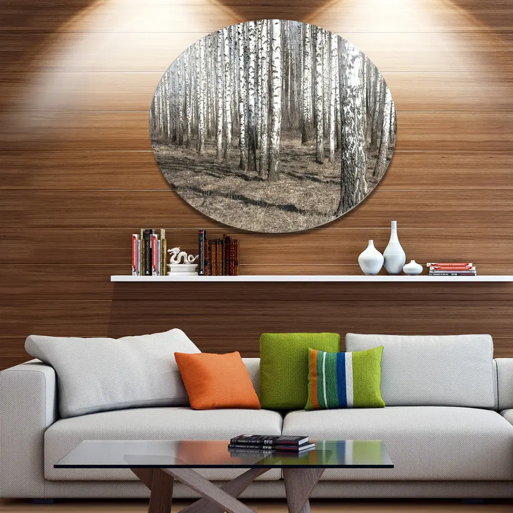 Beautiful Dense Birch Forest View, Modern Forest Round Wall Art, 23"