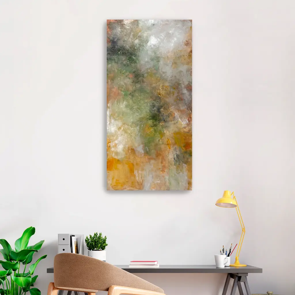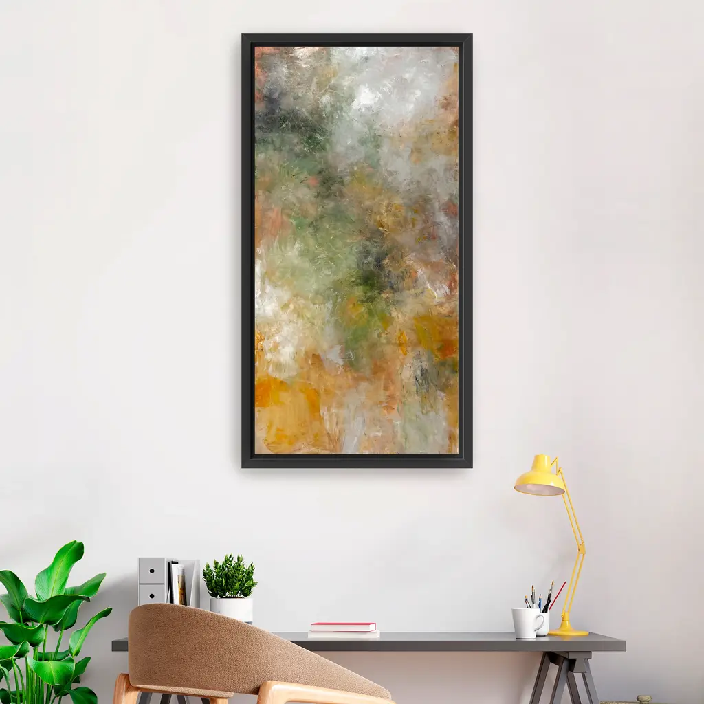 Immerse yourself in a soothing blend of warm earth tones and soft greens, where textured layers create a calming, organic abstract landscape. This piece evokes natural serenity and rustic elegance, perfect for grounding any modern space. Our Gallery Wrap Canvas Prints are proudly assembled with high quality materials in California, USA. Each piece is printed on a thick, archival grade canvas using Giclee technology. It is then hand-stretched by our experienced artisans over solid wood bars, which will not warp over time. The final product is a piece personally crafted for you to confidently display on your wall. Care and Assembly: Ensure that the location of your piece has little to no exposure to heat, sunlight, and moisture. Wipe clean, only if needed. Each piece includes hanging hardware to hang on your wall vertically.