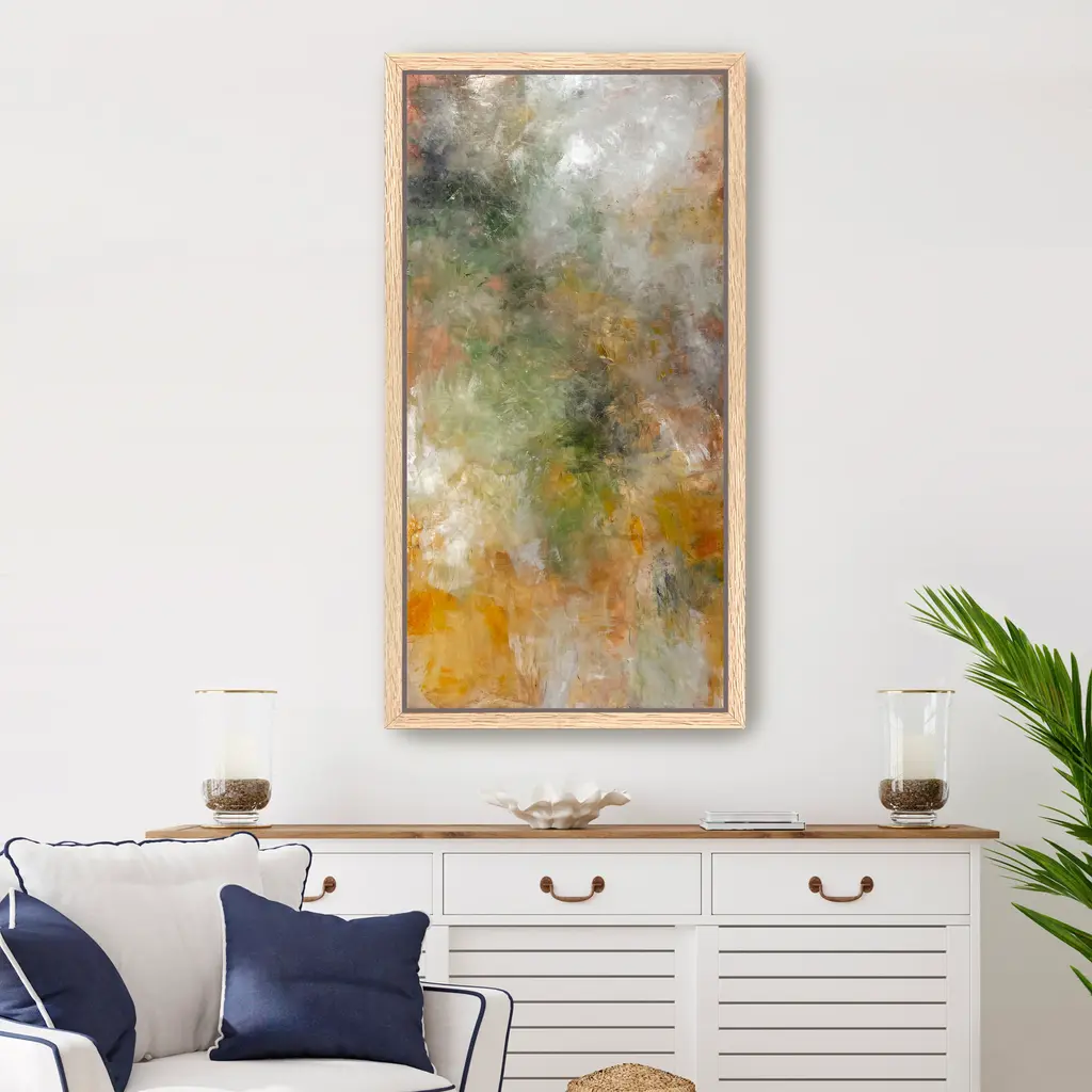 Immerse yourself in a soothing blend of warm earth tones and soft greens, where textured layers create a calming, organic abstract landscape. This piece evokes natural serenity and rustic elegance, perfect for grounding any modern space. Our Gallery Wrap Canvas Prints are proudly assembled with high quality materials in California, USA. Each piece is printed on a thick, archival grade canvas using Giclee technology. It is then hand-stretched by our experienced artisans over solid wood bars, which will not warp over time. The final product is a piece personally crafted for you to confidently display on your wall. Care and Assembly: Ensure that the location of your piece has little to no exposure to heat, sunlight, and moisture. Wipe clean, only if needed. Each piece includes hanging hardware to hang on your wall vertically.