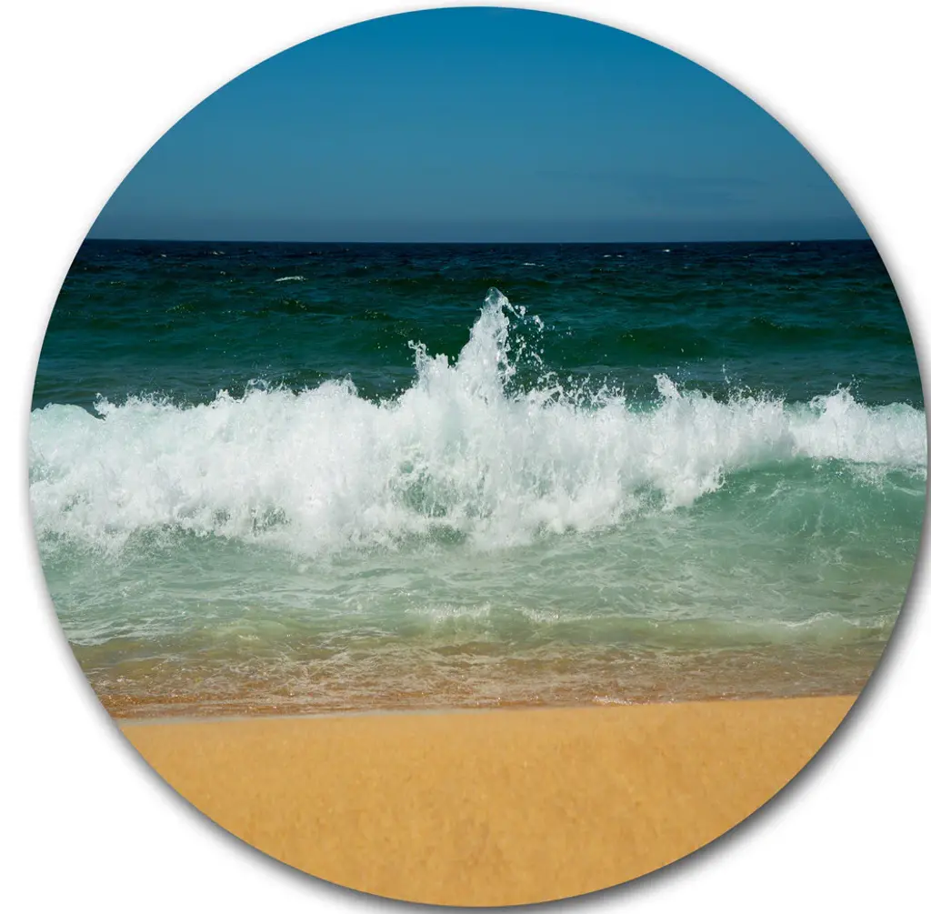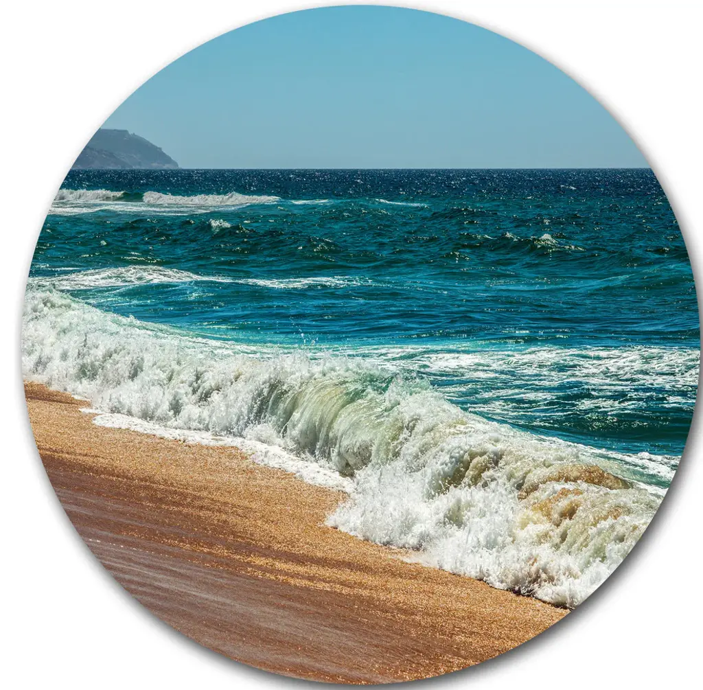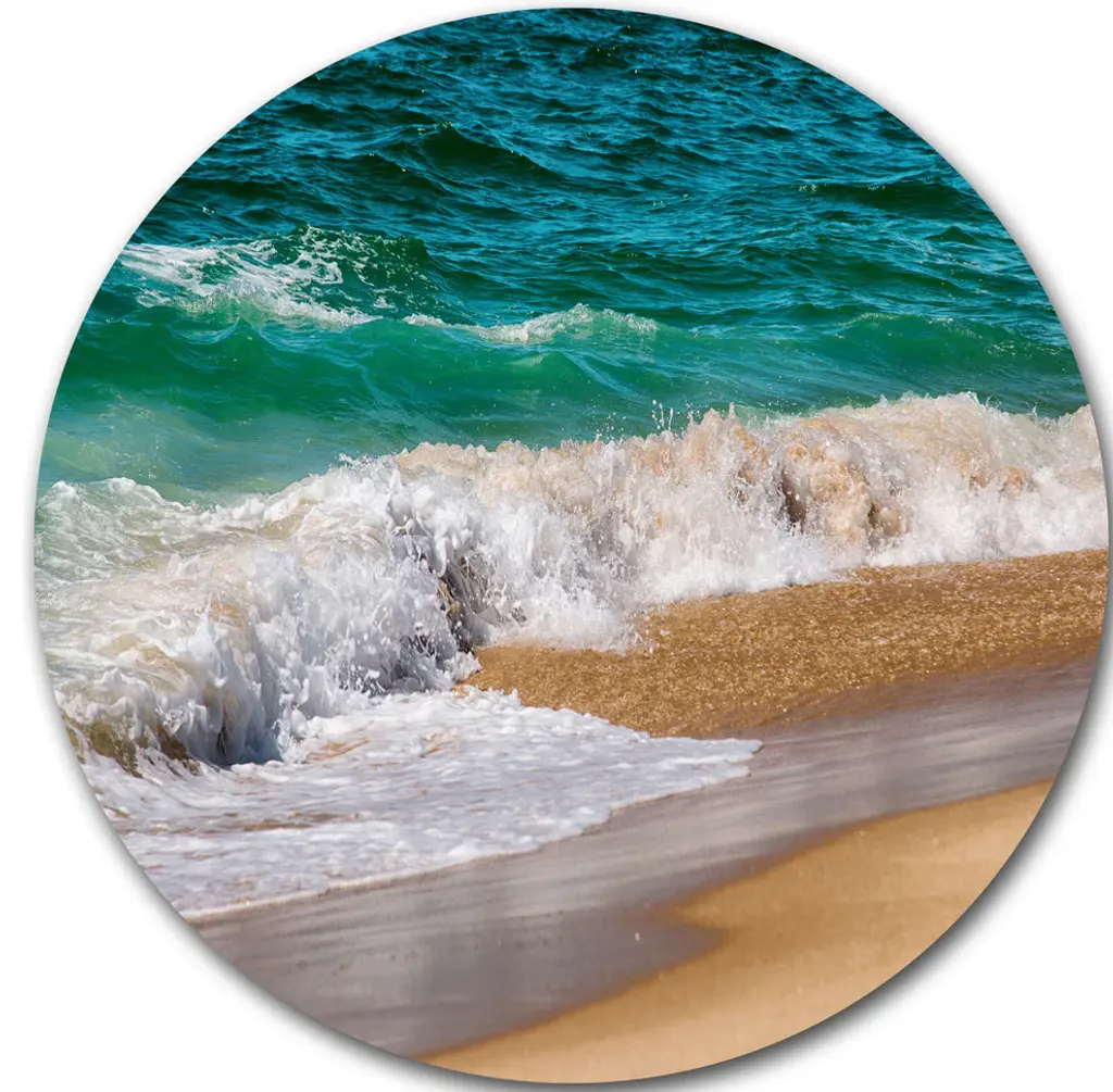 Bring Contemporary Abstraction to your home with this large Circle Metal wall art. This Beautiful Empty Beach under Blue Sky Metal Artwork makes it the focal point of any room or office. - White Gloss Coating ensures colors are extra vibrant with light reflection.- Aluminum grade Sheet Metal with 1 inch mounting frame on the back giving the illusion that the artwork is floating on the wall..- Mounting Brackets are included along with instructions.- High Quality Digital images are created directly into a glossy aluminum panel producing a stunning and captivating print into the glossy finish of the metal.- Water, Fire and Scratch resistant HD Aluminum panels.- Looks better than any photo paper and guaranteed to last at least 20 years- Easy to clean with a microfiber cloth. Colors are far superior to regular Canvas Art. - Easy to Hang