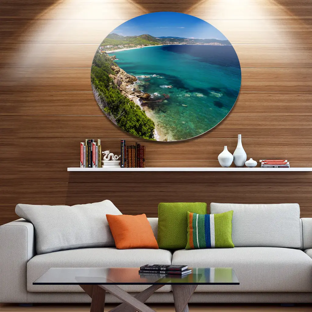 Beautiful Greek Beach Of Sea, Seashore Large Disc Metal Wall Art, 23"