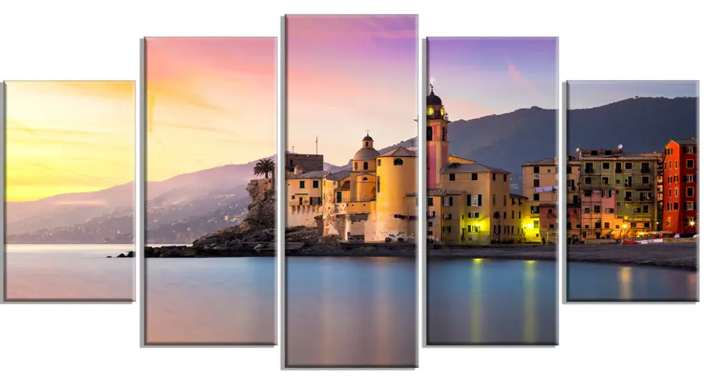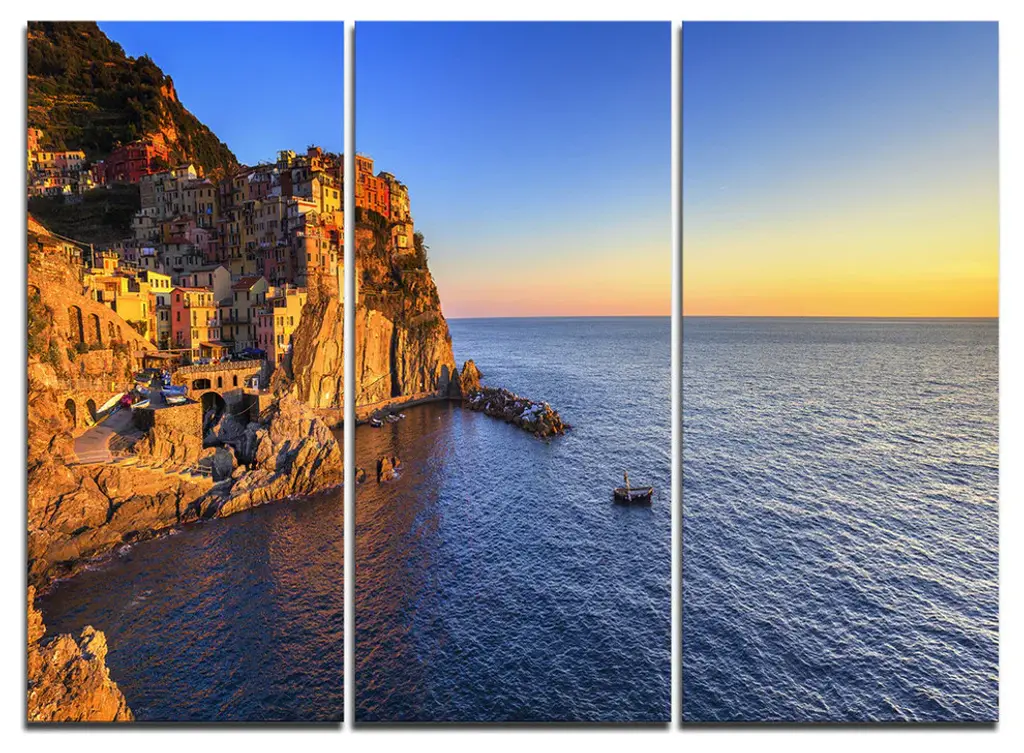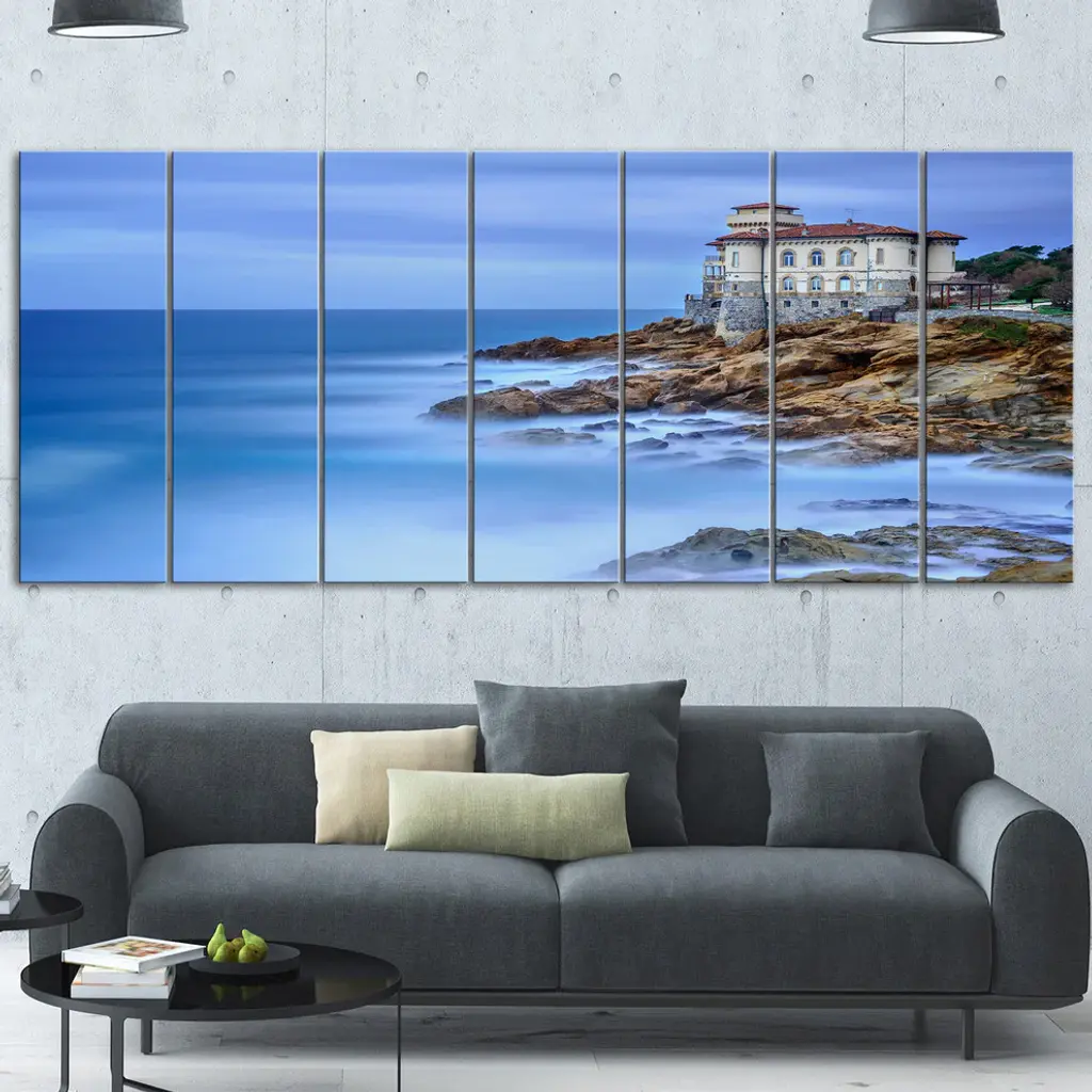 Beautiful Italian Seashore View, Seashore, Metal Art, 83x32, 7 Panels
