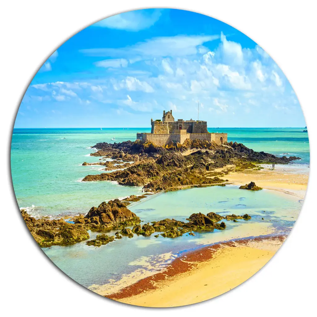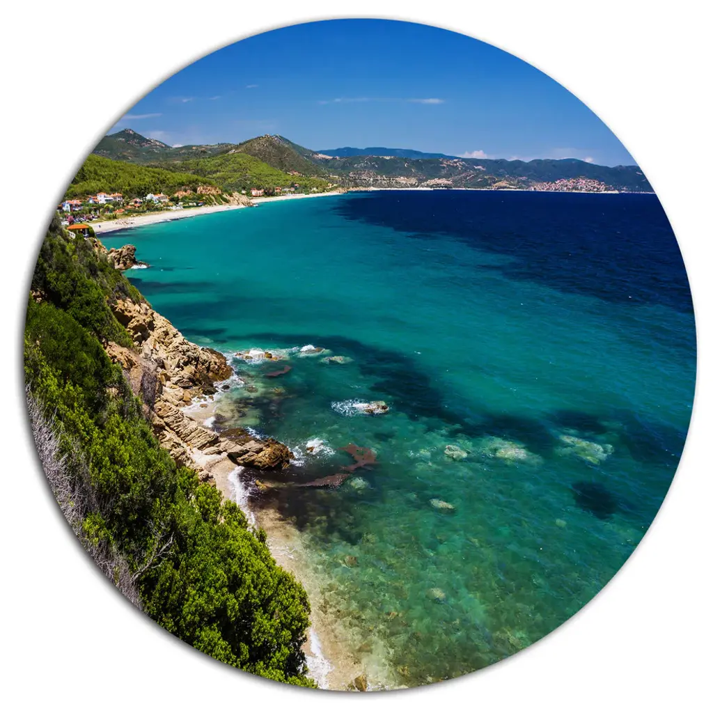 Bring Contemporary Abstraction to your home with this large Circle Metal wall art. This Beautiful Knysna Beach South Africa Metal Artwork makes it the focal point of any room or office. - White Gloss Coating ensures colors are extra vibrant with light reflection.- Aluminum grade Sheet Metal with 1 inch mounting frame on the back giving the illusion that the artwork is floating on the wall..- Mounting Brackets are included along with instructions.- High Quality Digital images are created directly into a glossy aluminum panel producing a stunning and captivating print into the glossy finish of the metal.- Water, Fire and Scratch resistant HD Aluminum panels.- Looks better than any photo paper and guaranteed to last at least 20 years- Easy to clean with a microfiber cloth. Colors are far superior to regular Canvas Art. - Easy to Hang