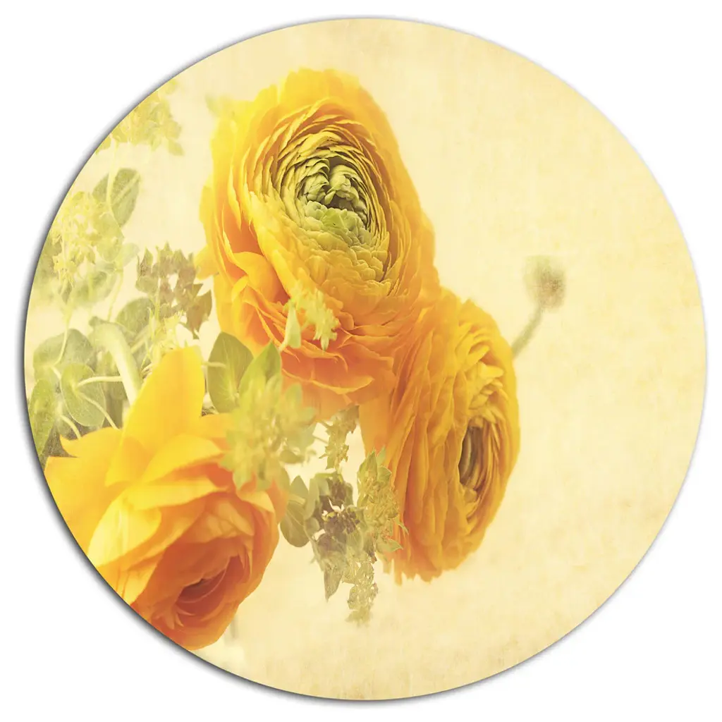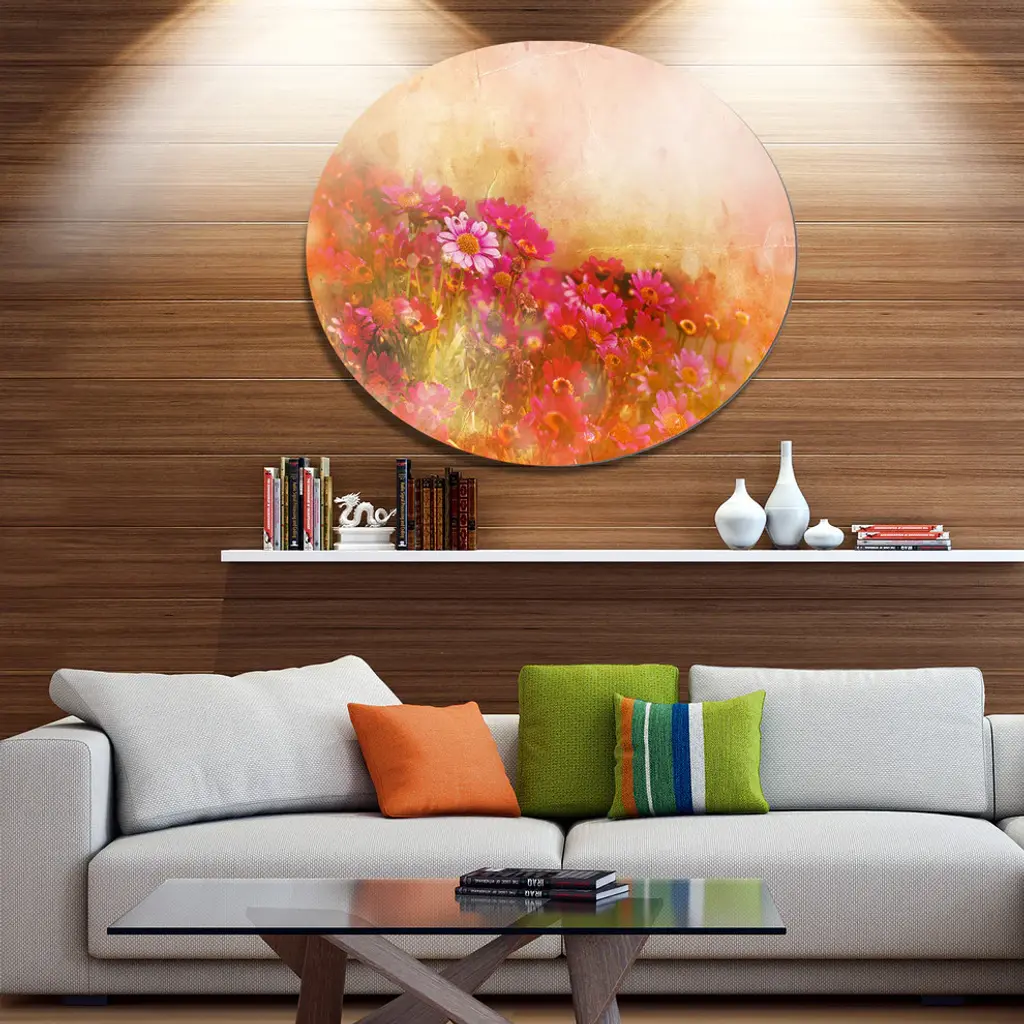 Bring Contemporary Abstraction to your home with this large Circle Metal wall art. This Beautiful Little Flowers in Spring Metal Artwork makes it the focal point of any room or office. - White Gloss Coating ensures colors are extra vibrant with light reflection.- Aluminum grade Sheet Metal with 1 inch mounting frame on the back giving the illusion that the artwork is floating on the wall..- Mounting Brackets are included along with instructions.- High Quality Digital images are created directly into a glossy aluminum panel producing a stunning and captivating print into the glossy finish of the metal.- Water, Fire and Scratch resistant HD Aluminum panels.- Looks better than any photo paper and guaranteed to last at least 20 years- Easy to clean with a microfiber cloth. Colors are far superior to regular Canvas Art. - Easy to Hang