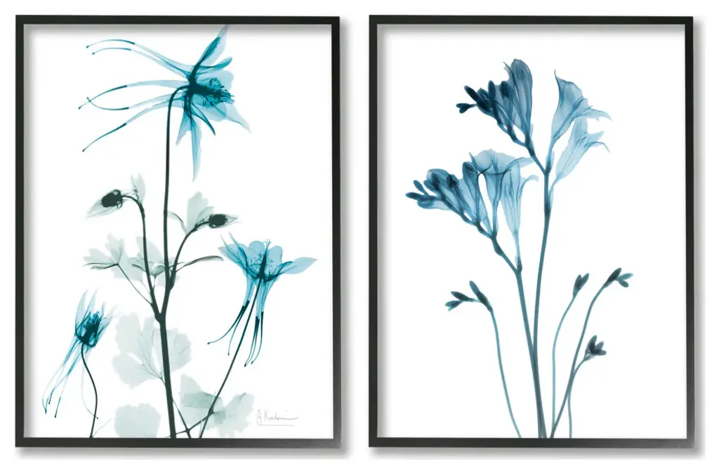 Beautiful Minimalist Blue Flower Plant Stem Photograph, 2Pc, Each 16 X 20