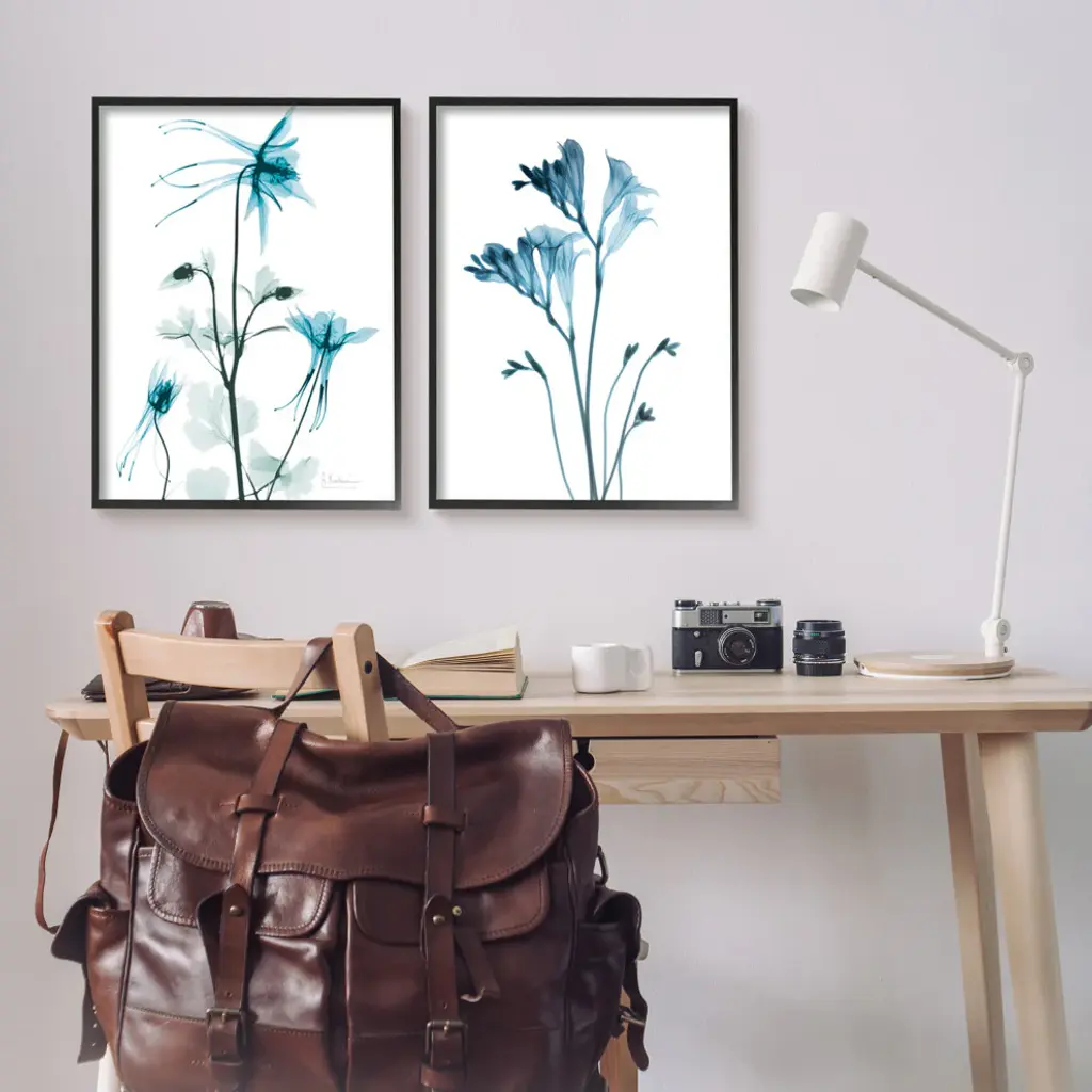 Beautiful Minimalist Blue Flower Plant Stem Photograph, 2Pc, Each 24 X 30