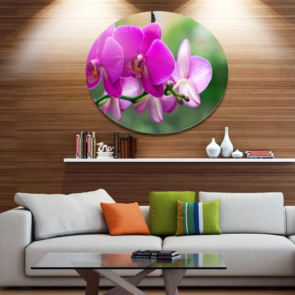 Beautiful Orchid Flowers On Green, Modern Flower Round Wall Art, 11"