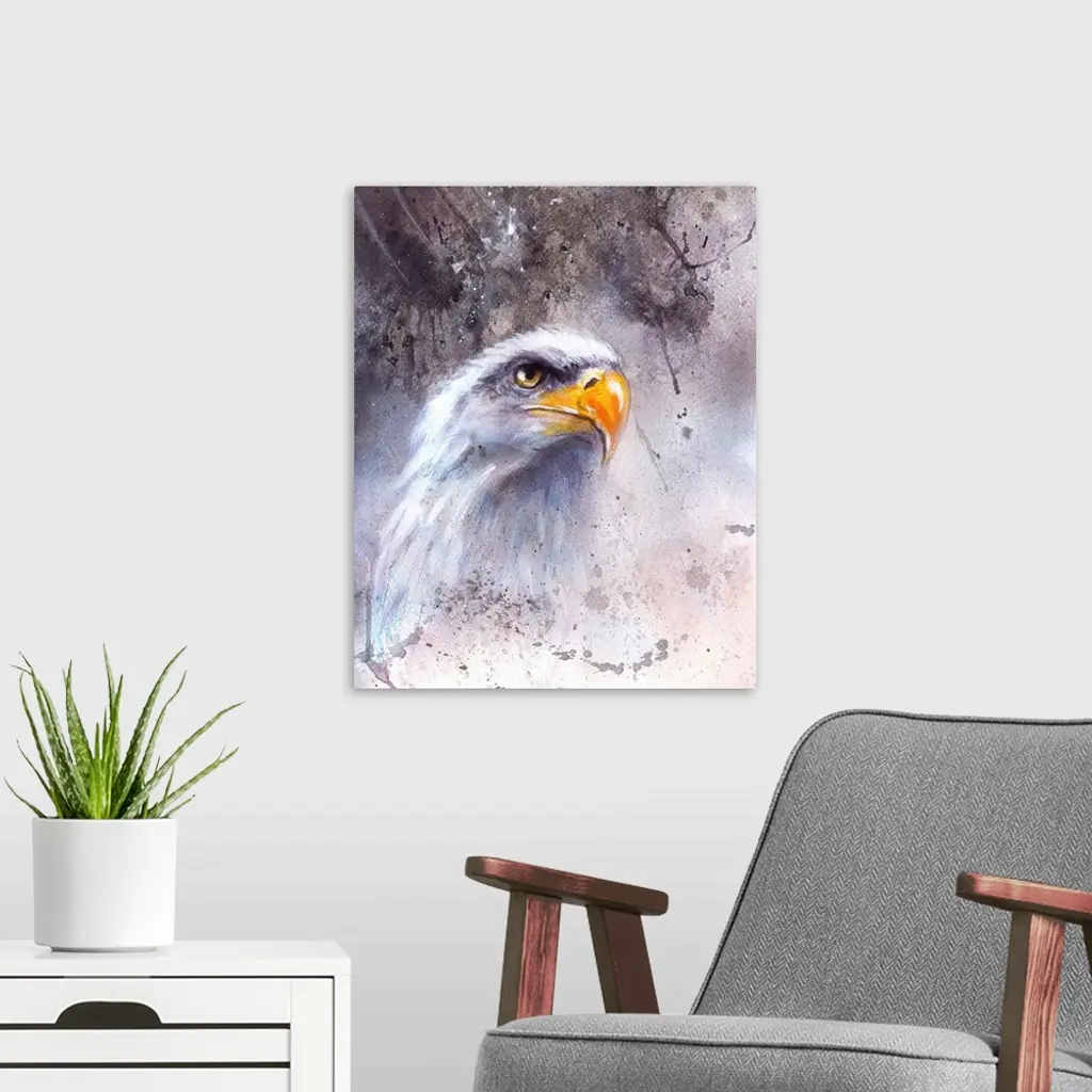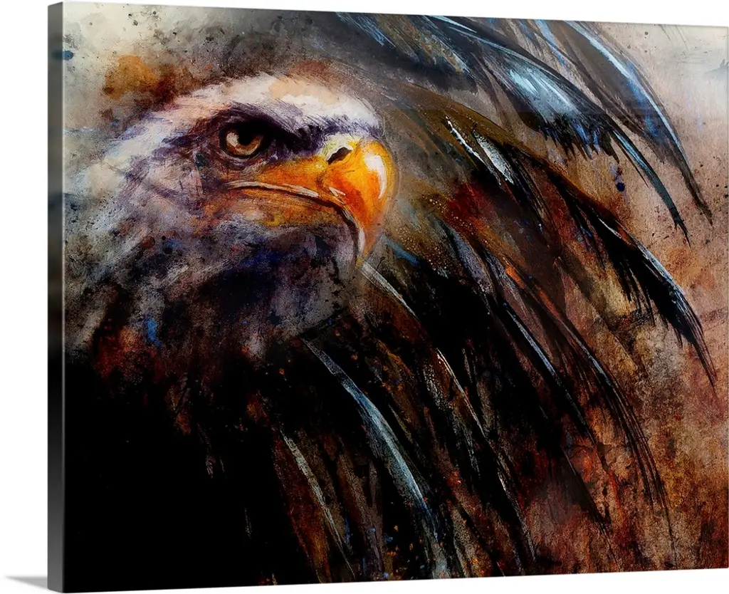 Beautiful Painting Of A Bald Eagle Head Against An Abstract Background