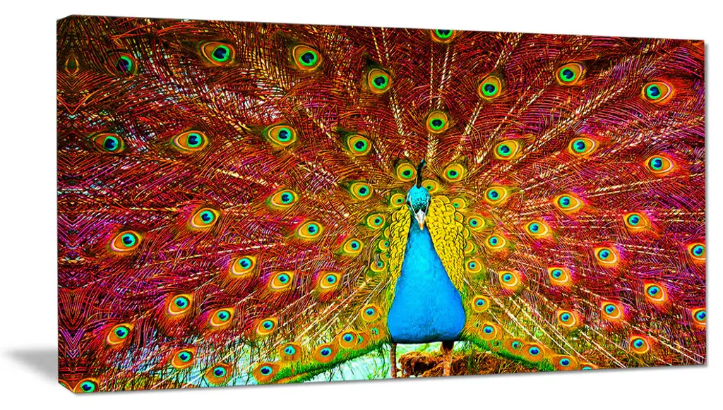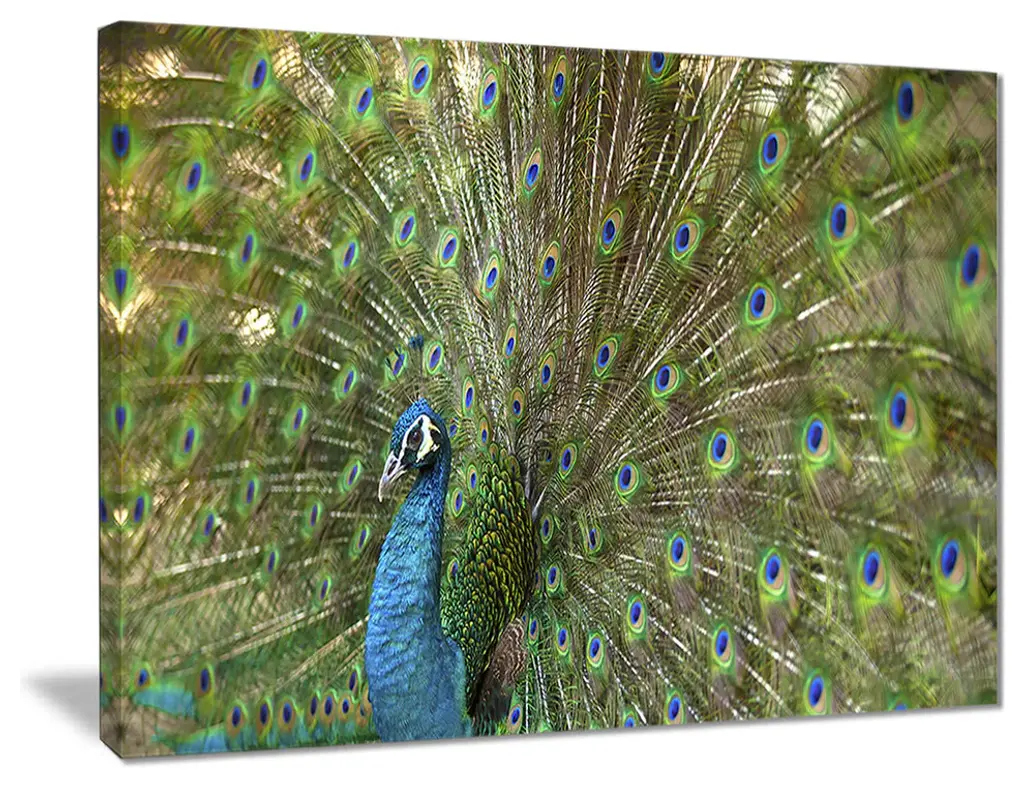 The Beautiful Peacock with Feathers canvas art print is sure to make an impression on anyone who sees it. This artwork is gallery wrapped around a 1-inch solid wood frame and arrives carefully packaged and entirely ready to hang on the wall. Design Art only uses the highest resolution and pigments to ensure a crisp colorful print that is never faded or pixelated. This artwork is sure to be a conversation starter in any home or office.