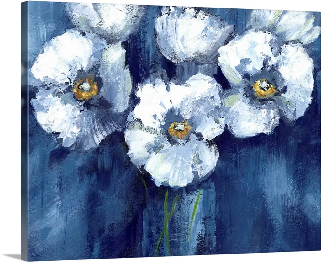 "Beautiful Peonies In Indigo" Canvas Art, 36"x24"