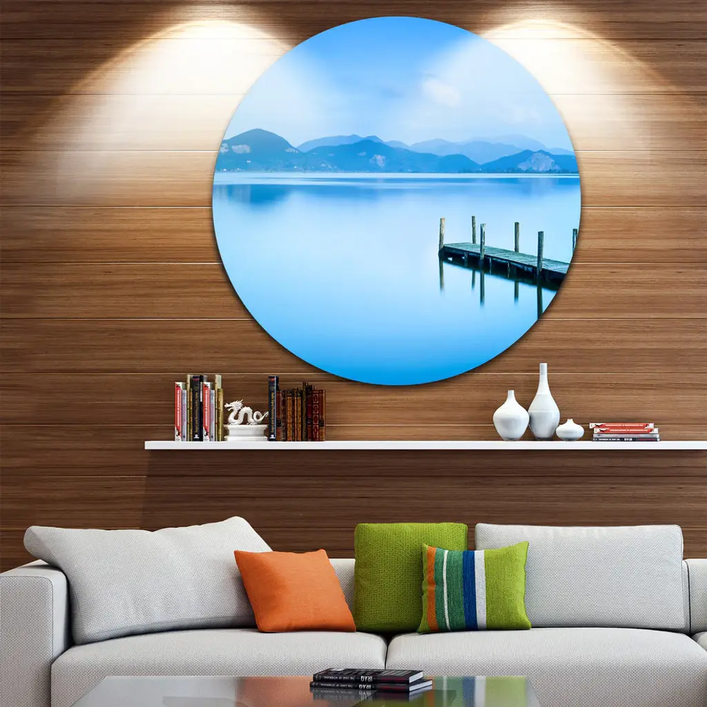 Bring Contemporary Abstraction to your home with this large Circle Metal wall art. This Beautiful Pier in Sea Metal Artwork makes it the focal point of any room or office. - White Gloss Coating ensures colors are extra vibrant with light reflection.- Aluminum grade Sheet Metal with 1 inch mounting frame on the back giving the illusion that the artwork is floating on the wall..- Mounting Brackets are included along with instructions.- High Quality Digital images are created directly into a glossy aluminum panel producing a stunning and captivating print into the glossy finish of the metal.- Water, Fire and Scratch resistant HD Aluminum panels.- Looks better than any photo paper and guaranteed to last at least 20 years- Easy to clean with a microfiber cloth. Colors are far superior to regular Canvas Art. - Easy to Hang