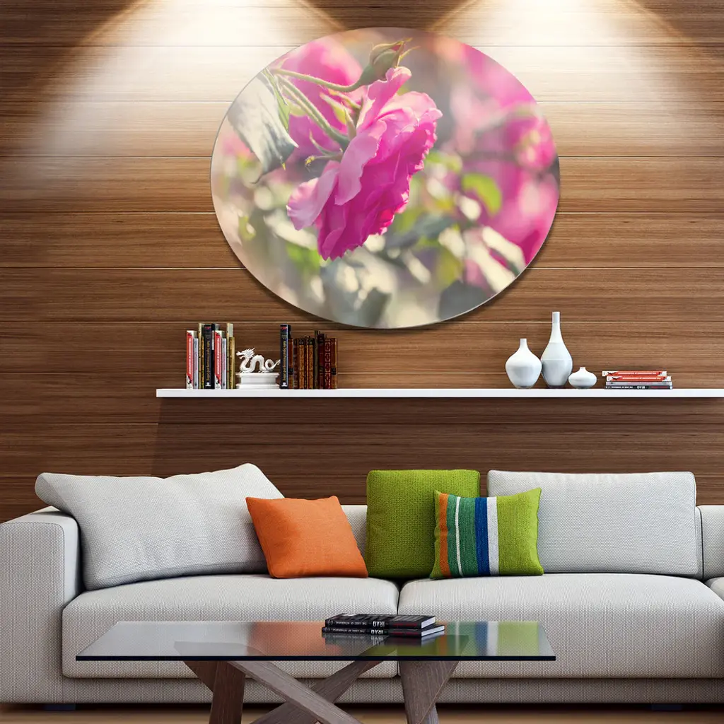 Beautiful Pink Rose Flowers, Modern Flower Disc Metal Artwork, 23"