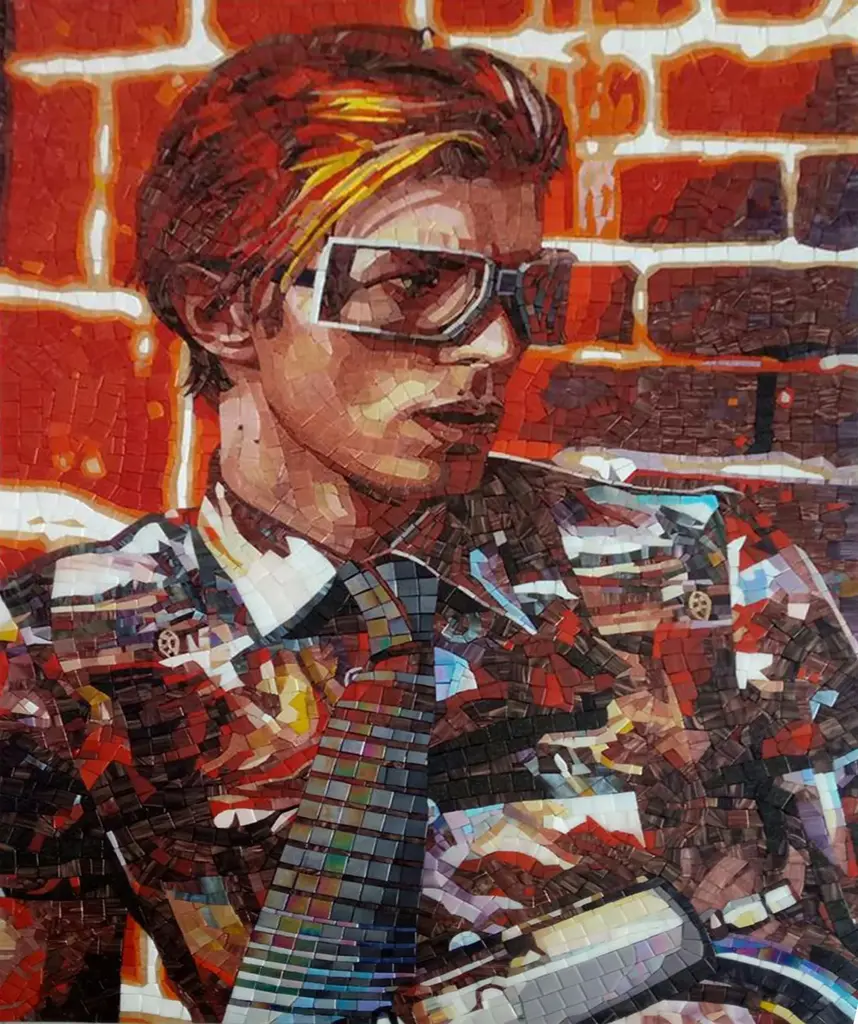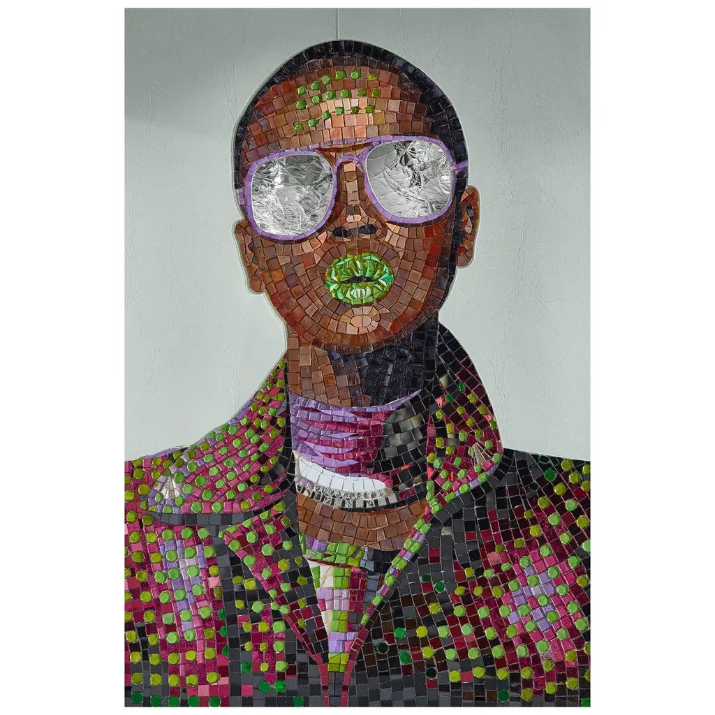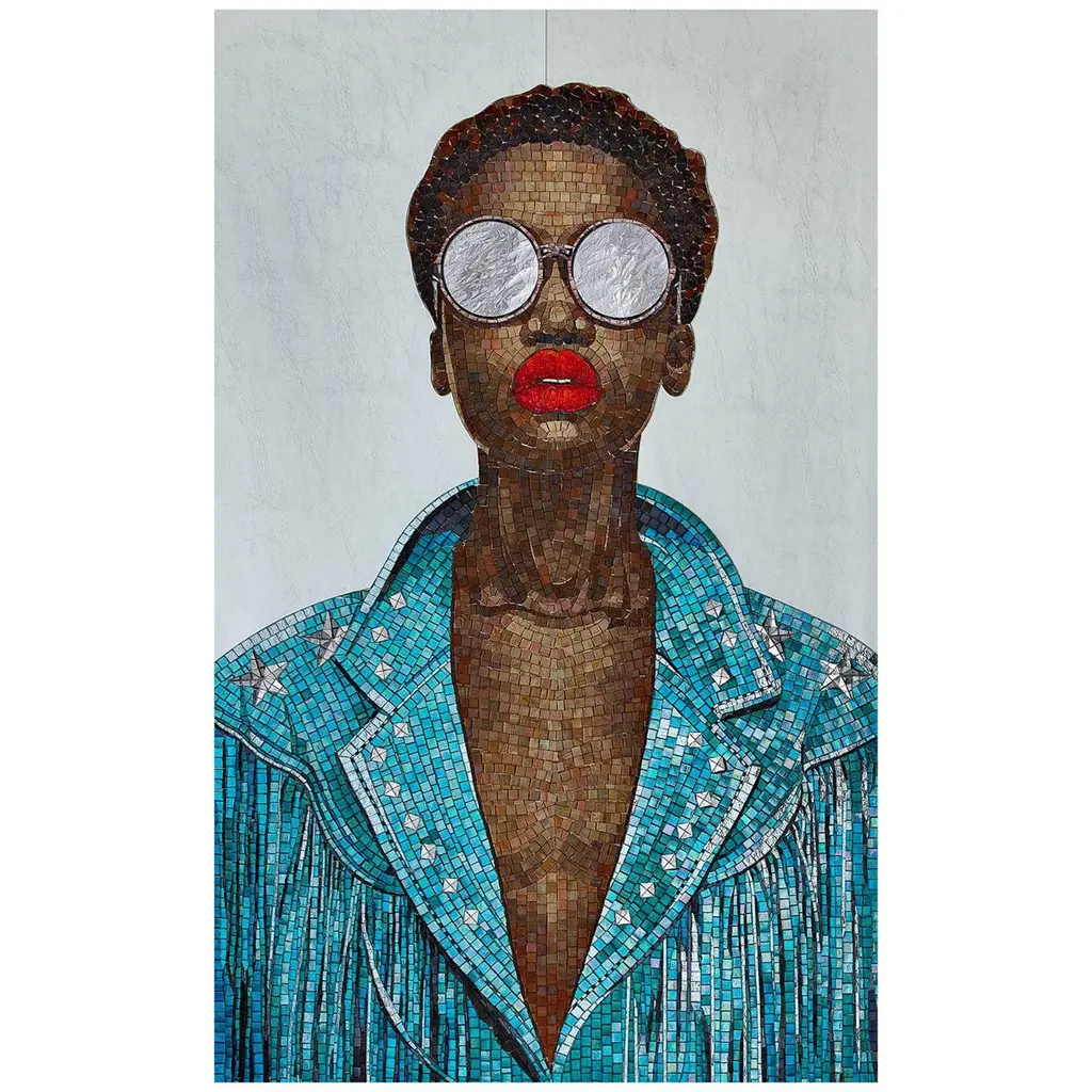 Beautiful Portrait Artistic Mosaic On White Metal Support Holes On Back To Hang