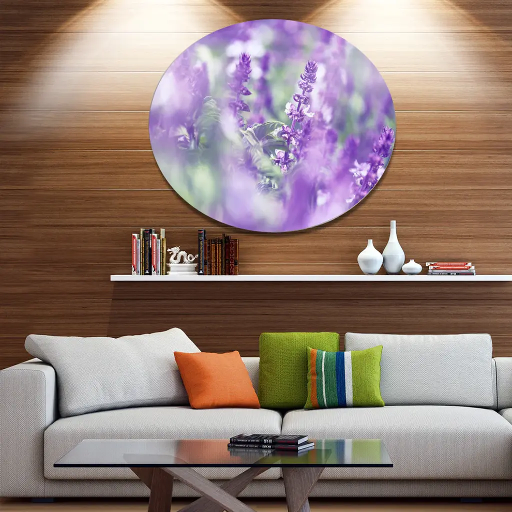 Beautiful Purple Mint Flowers, Flower Large Disc Metal Wall Art, 11"