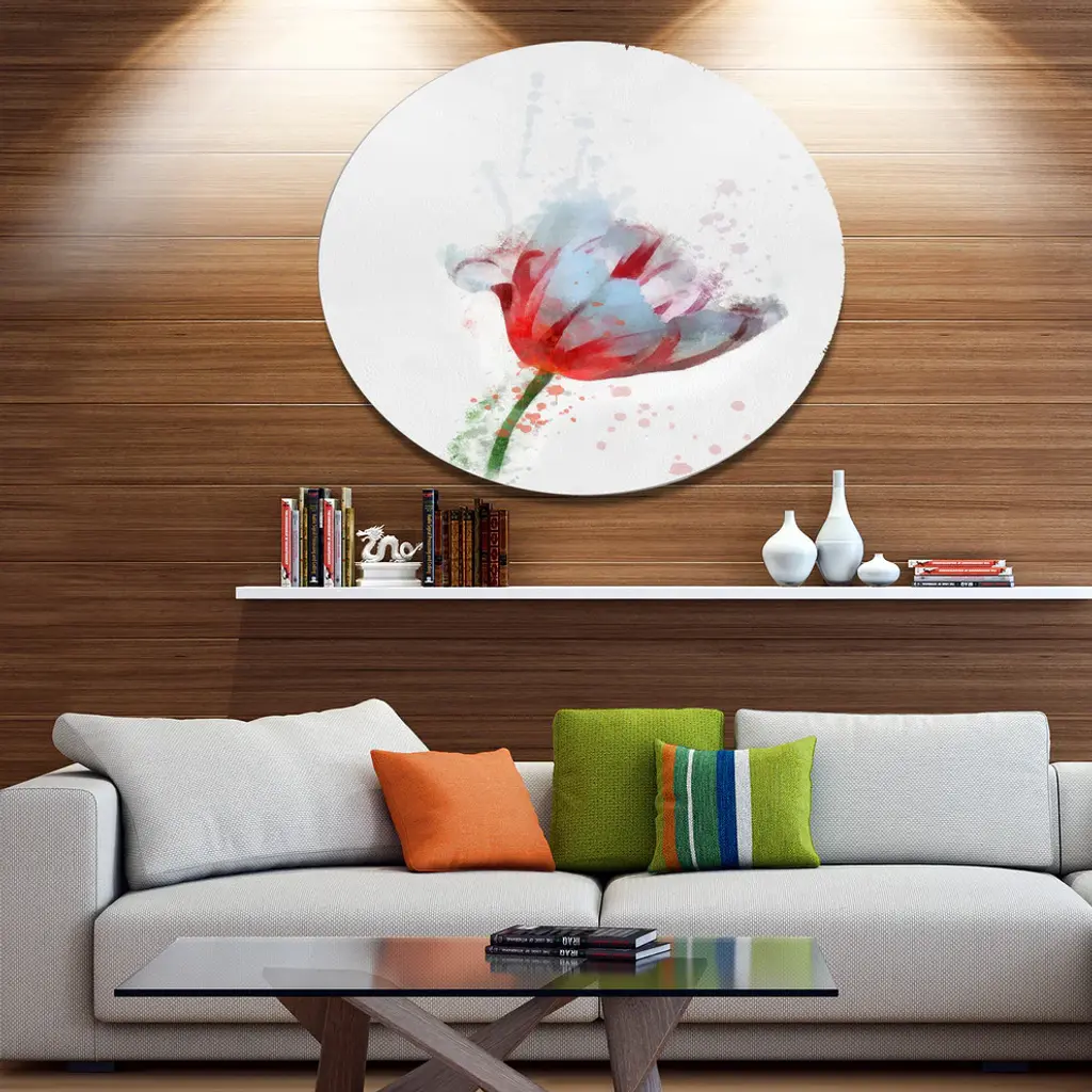 Beautiful Red White Flower Sketch, Floral Disc Metal Wall Art, 36"