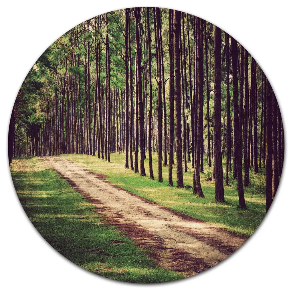 Bring Contemporary Abstraction to your home with this large Circle Metal wall art. This Beautiful Road Through Thick Woods Metal Artwork makes it the focal point of any room or office. - White Gloss Coating ensures colors are extra vibrant with light reflection.- Aluminum grade Sheet Metal with 1 inch mounting frame on the back giving the illusion that the artwork is floating on the wall..- Mounting Brackets are included along with instructions.- High Quality Digital images are created directly into a glossy aluminum panel producing a stunning and captivating print into the glossy finish of the metal.- Water, Fire and Scratch resistant HD Aluminum panels.- Looks better than any photo paper and guaranteed to last at least 20 years- Easy to clean with a microfiber cloth. Colors are far superior to regular Canvas Art. - Easy to Hang