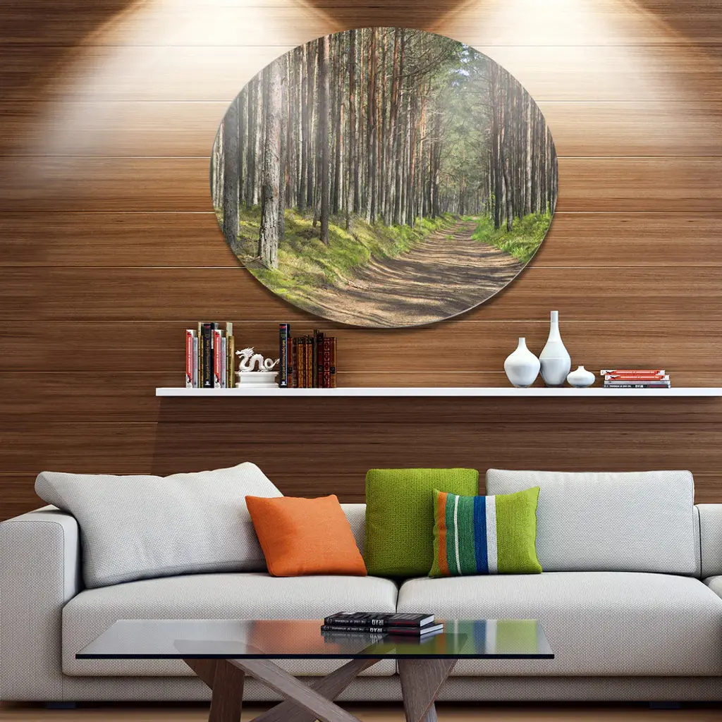 Beautiful Road Through Thick Woods, Modern Forest Round Wall Art, 23"