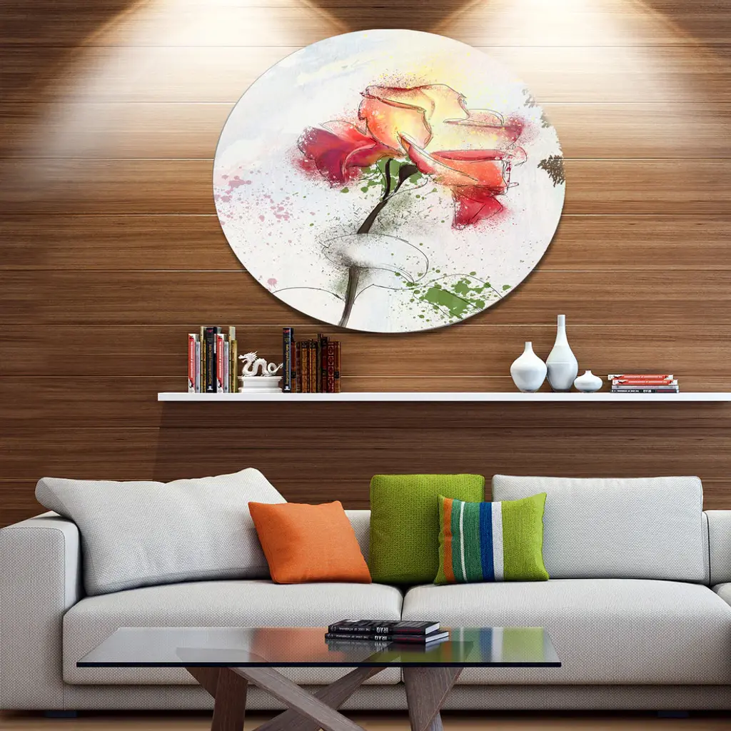 Bring Contemporary Abstraction to your home with this large Circle Metal wall art. This Beautiful Rose Illustration Drawing Metal Artwork makes it the focal point of any room or office. - White Gloss Coating ensures colors are extra vibrant with light reflection.- Aluminum grade Sheet Metal with 1 inch mounting frame on the back giving the illusion that the artwork is floating on the wall..- Mounting Brackets are included along with instructions.- High Quality Digital images are created directly into a glossy aluminum panel producing a stunning and captivating print into the glossy finish of the metal.- Water, Fire and Scratch resistant HD Aluminum panels.- Looks better than any photo paper and guaranteed to last at least 20 years- Easy to clean with a microfiber cloth. Colors are far superior to regular Canvas Art. - Easy to Hang
