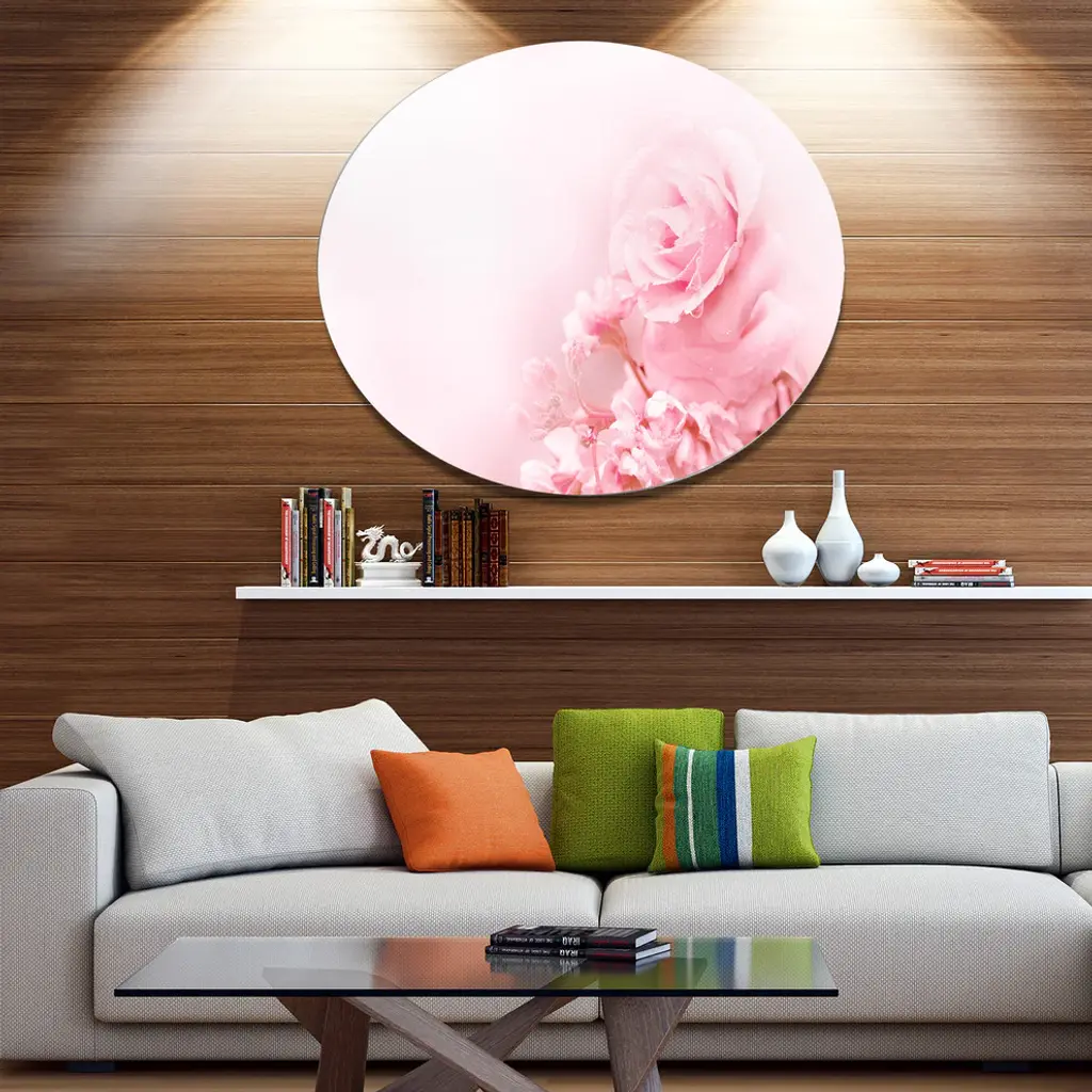Bring Contemporary Abstraction to your home with this large Circle Metal wall art. This Beautiful Rose In Magic Light Metal Artwork makes it the focal point of any room or office. - White Gloss Coating ensures colors are extra vibrant with light reflection.- Aluminum grade Sheet Metal with 1 inch mounting frame on the back giving the illusion that the artwork is floating on the wall..- Mounting Brackets are included along with instructions.- High Quality Digital images are created directly into a glossy aluminum panel producing a stunning and captivating print into the glossy finish of the metal.- Water, Fire and Scratch resistant HD Aluminum panels.- Looks better than any photo paper and guaranteed to last at least 20 years- Easy to clean with a microfiber cloth. Colors are far superior to regular Canvas Art. - Easy to Hang