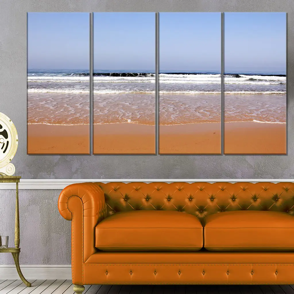 "Beautiful Sea And Beach Ashdod Israel" Seascape Wall Art, 4 Panels, 48"x28"
