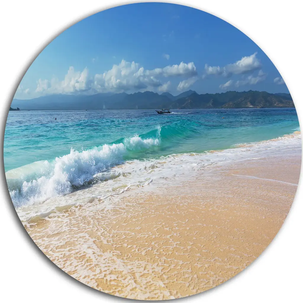Bring Contemporary Abstraction to your home with this large Circle Metal wall art. This Beautiful Sea View of Rocky Coast Metal Artwork makes it the focal point of any room or office. - White Gloss Coating ensures colors are extra vibrant with light reflection.- Aluminum grade Sheet Metal with 1 inch mounting frame on the back giving the illusion that the artwork is floating on the wall..- Mounting Brackets are included along with instructions.- High Quality Digital images are created directly into a glossy aluminum panel producing a stunning and captivating print into the glossy finish of the metal.- Water, Fire and Scratch resistant HD Aluminum panels.- Looks better than any photo paper and guaranteed to last at least 20 years- Easy to clean with a microfiber cloth. Colors are far superior to regular Canvas Art. - Easy to Hang