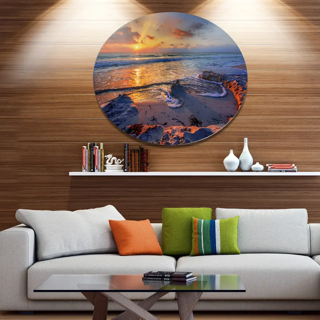Beautiful Seashore With Yellow Sun, Seashore Art Round Wall Art, 36"