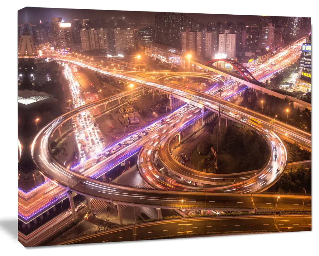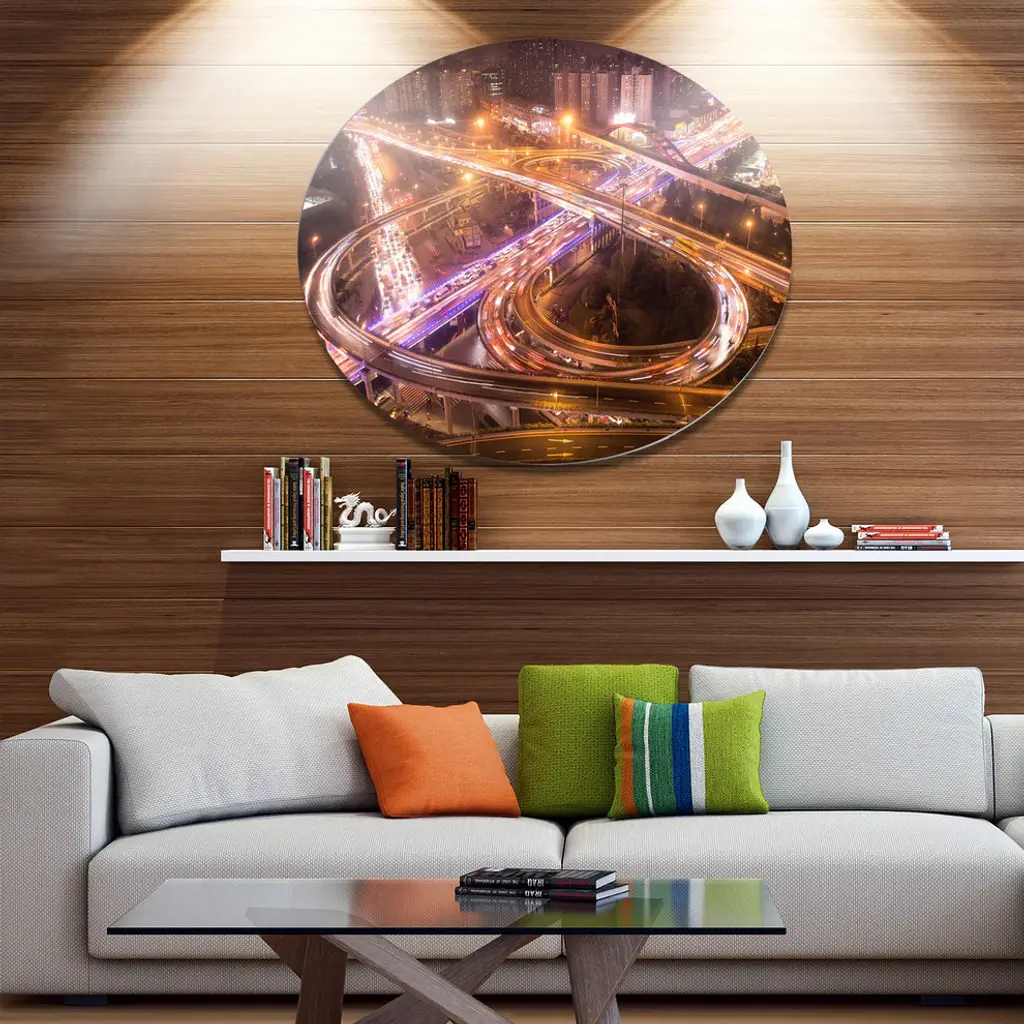 Beautiful Shanghai Traffic, Cityscape Wall Round Wall Art, 11"