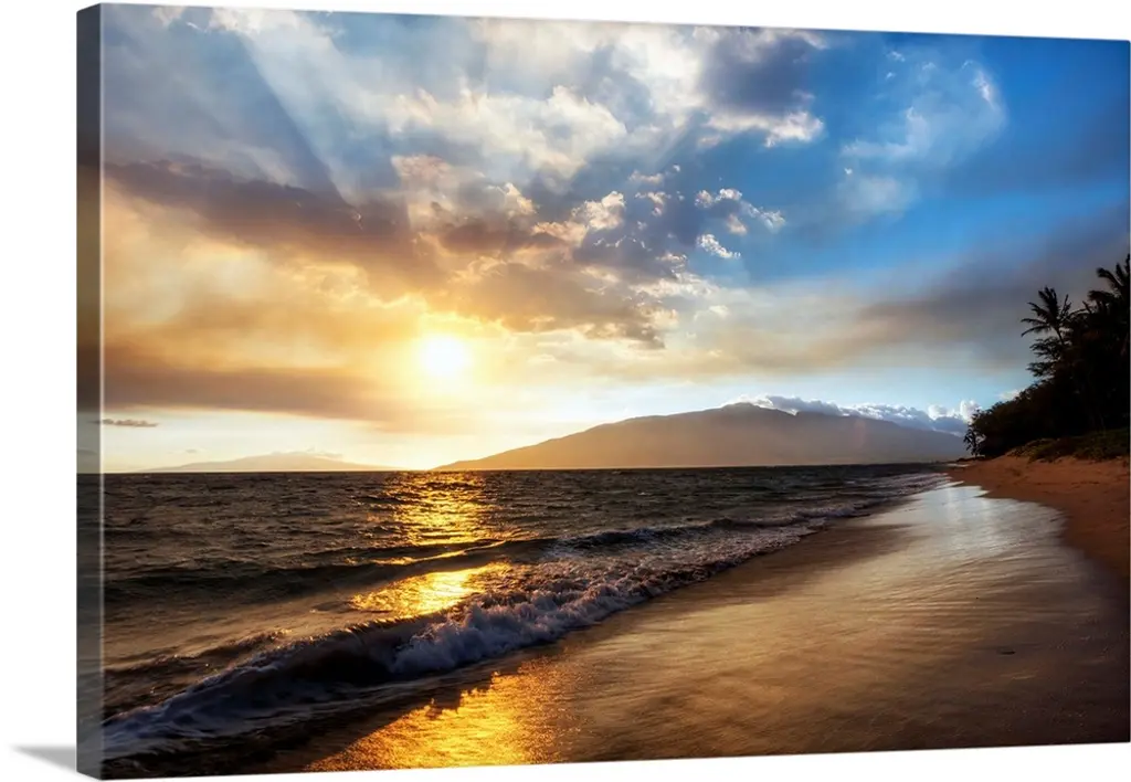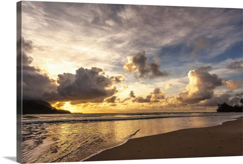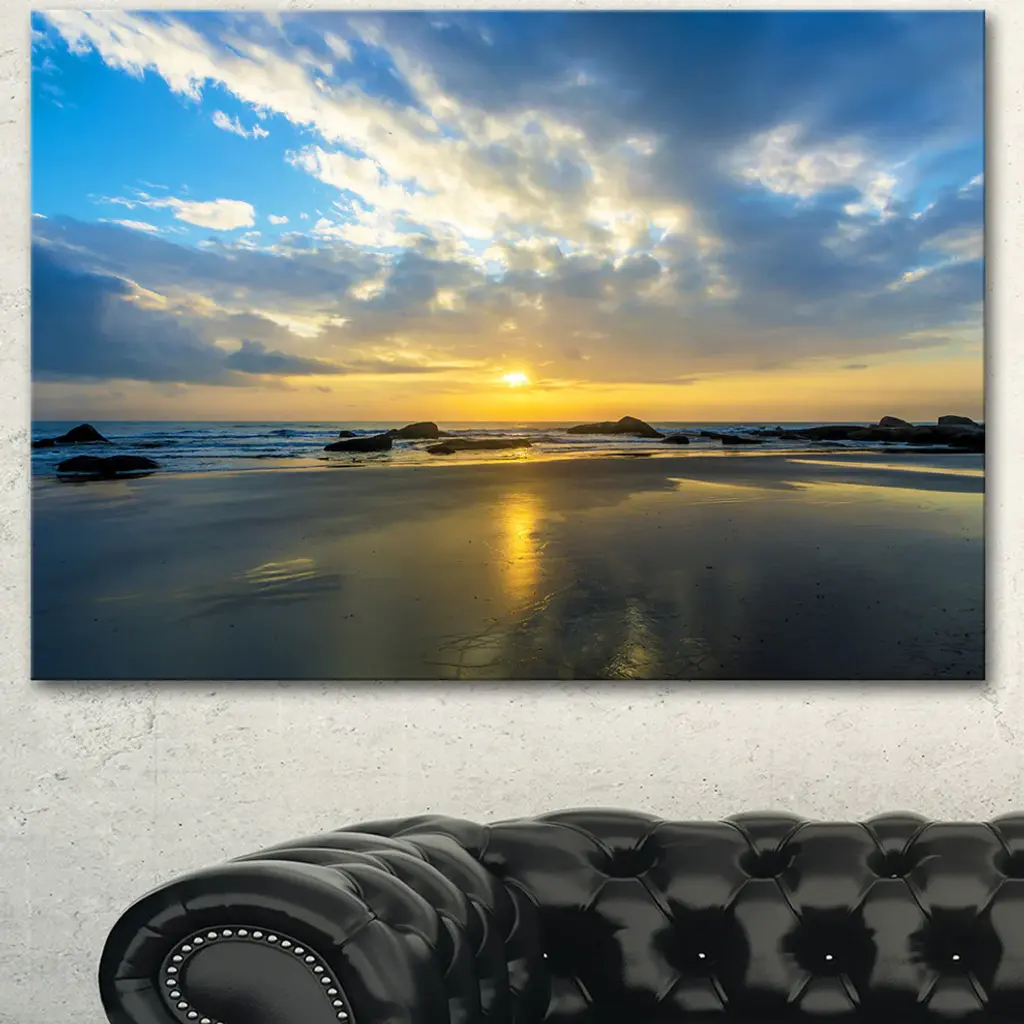 Beautiful Sunrise And Seashore, Large Seashore Canvas Wall Art, 60"x28"