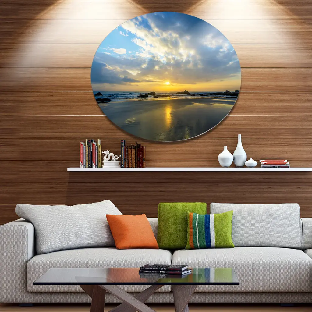 Beautiful Sunrise And Seashore, Seashore Disc Metal Artwork, 23"