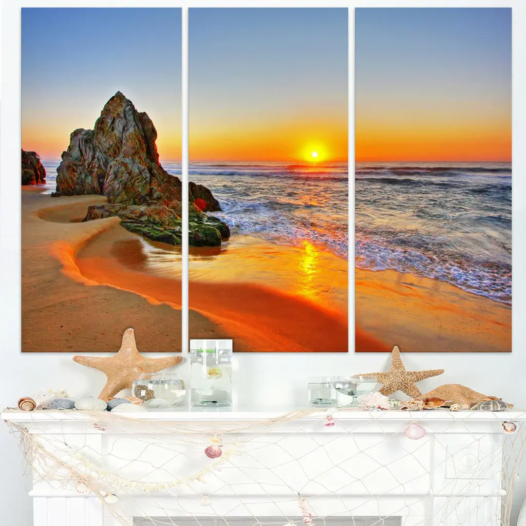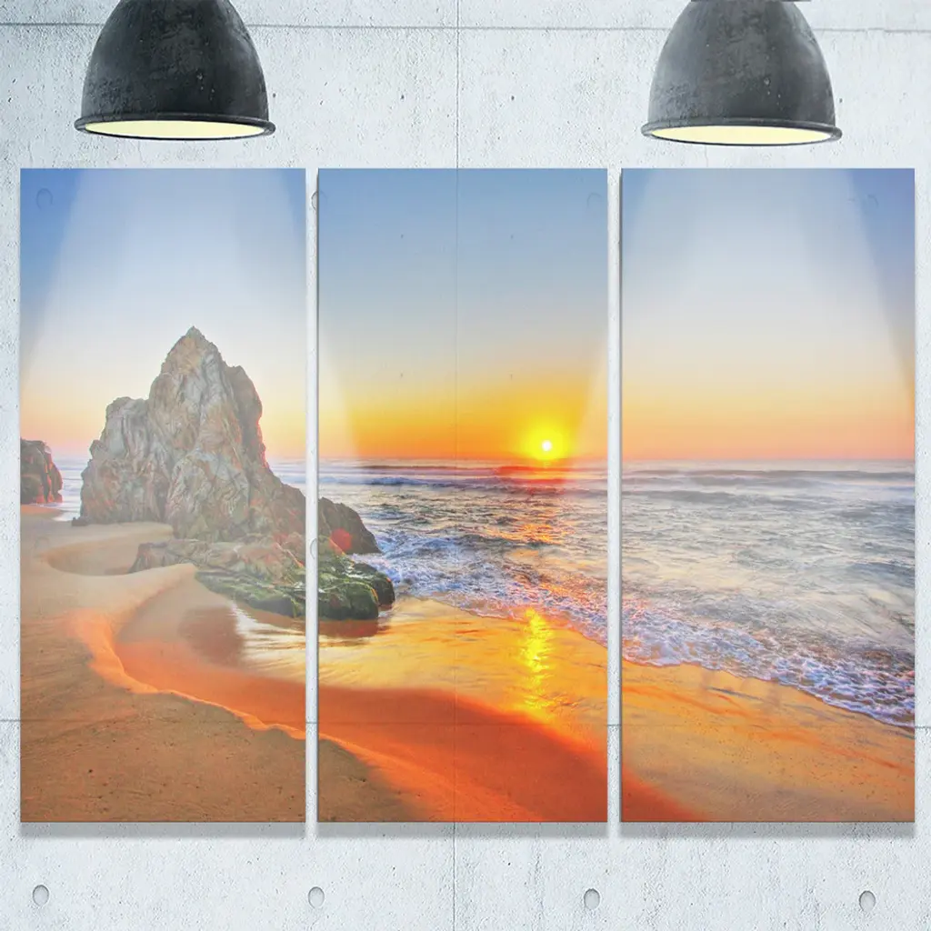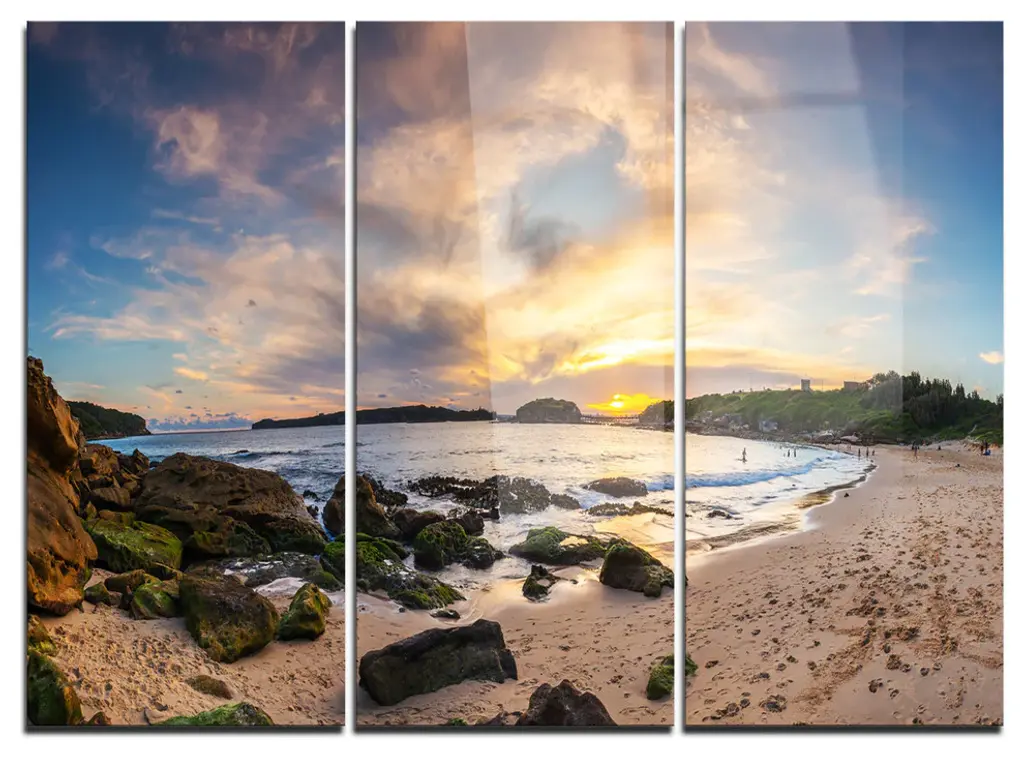 "Beautiful Sunrise By Beach In Tathra" Metal Wall Art, 3 Panels, 36"x28"