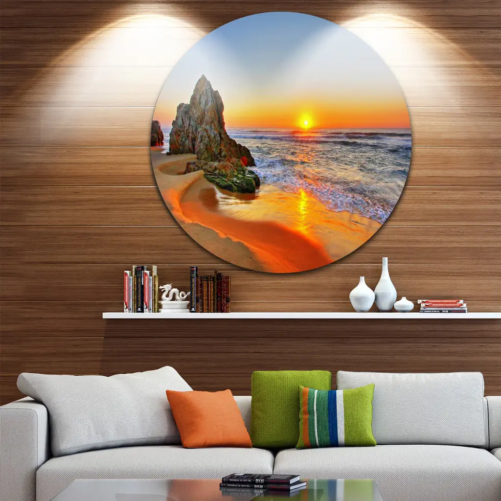 Bring Contemporary Abstraction to your home with this large Circle Metal wall art. This Beautiful Sunrise by Beach in Tathra Metal Artwork makes it the focal point of any room or office. - White Gloss Coating ensures colors are extra vibrant with light reflection.- Aluminum grade Sheet Metal with 1 inch mounting frame on the back giving the illusion that the artwork is floating on the wall..- Mounting Brackets are included along with instructions.- High Quality Digital images are created directly into a glossy aluminum panel producing a stunning and captivating print into the glossy finish of the metal.- Water, Fire and Scratch resistant HD Aluminum panels.- Looks better than any photo paper and guaranteed to last at least 20 years- Easy to clean with a microfiber cloth. Colors are far superior to regular Canvas Art. - Easy to Hang