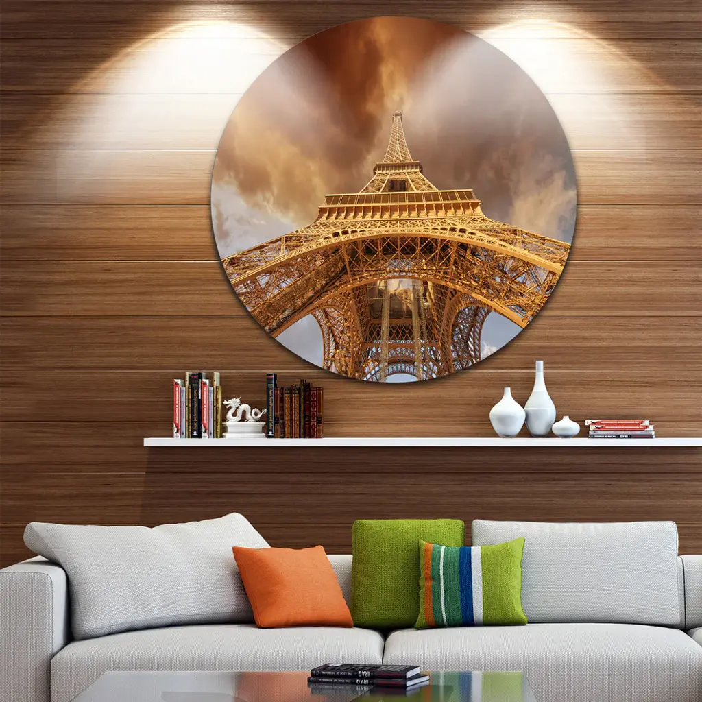 Bring Contemporary Abstraction to your home with this large Circle Metal wall art. This Beautiful View of Paris Eiffel Tower in Paris Metal Artwork makes it the focal point of any room or office. - White Gloss Coating ensures colors are extra vibrant with light reflection.- Aluminum grade Sheet Metal with 1 inch mounting frame on the back giving the illusion that the artwork is floating on the wall..- Mounting Brackets are included along with instructions.- High Quality Digital images are created directly into a glossy aluminum panel producing a stunning and captivating print into the glossy finish of the metal.- Water, Fire and Scratch resistant HD Aluminum panels.- Looks better than any photo paper and guaranteed to last at least 20 years- Easy to clean with a microfiber cloth. Colors are far superior to regular Canvas Art. - Easy to Hang
