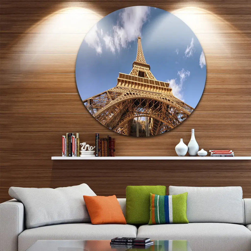 Bring Contemporary Abstraction to your home with this large Circle Metal wall art. This Beautiful View of Paris Eiffel Tower under Calm Sky Metal Artwork makes it the focal point of any room or office. - White Gloss Coating ensures colors are extra vibrant with light reflection.- Aluminum grade Sheet Metal with 1 inch mounting frame on the back giving the illusion that the artwork is floating on the wall..- Mounting Brackets are included along with instructions.- High Quality Digital images are created directly into a glossy aluminum panel producing a stunning and captivating print into the glossy finish of the metal.- Water, Fire and Scratch resistant HD Aluminum panels.- Looks better than any photo paper and guaranteed to last at least 20 years- Easy to clean with a microfiber cloth. Colors are far superior to regular Canvas Art. - Easy to Hang