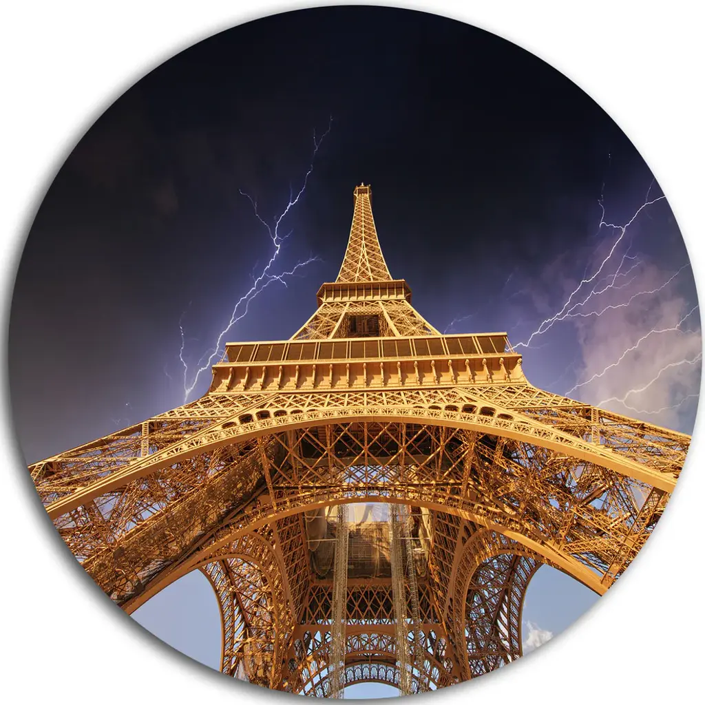 Bring Contemporary Abstraction to your home with this large Circle Metal wall art. This Beautiful View of Paris Eiffel Tower under Red Sky Metal Artwork makes it the focal point of any room or office. - White Gloss Coating ensures colors are extra vibrant with light reflection.- Aluminum grade Sheet Metal with 1 inch mounting frame on the back giving the illusion that the artwork is floating on the wall..- Mounting Brackets are included along with instructions.- High Quality Digital images are created directly into a glossy aluminum panel producing a stunning and captivating print into the glossy finish of the metal.- Water, Fire and Scratch resistant HD Aluminum panels.- Looks better than any photo paper and guaranteed to last at least 20 years- Easy to clean with a microfiber cloth. Colors are far superior to regular Canvas Art. - Easy to Hang
