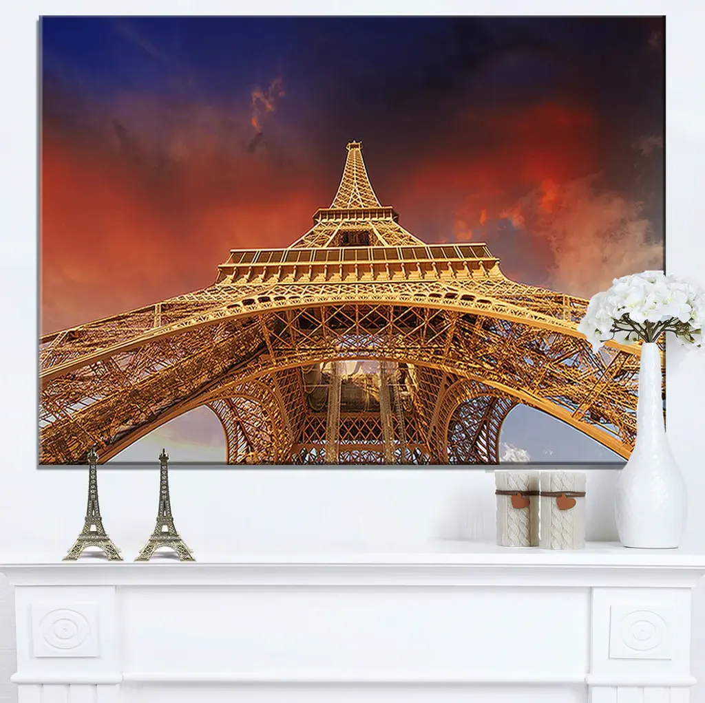 The Beautiful View of Paris Eiffel Tower under Red Sky canvas art print is sure to make an impression on anyone who sees it. This artwork is gallery wrapped around a 1-inch solid wood frame and arrives carefully packaged and entirely ready to hang on the wall. Design Art only uses the highest resolution and pigments to ensure a crisp colorful print that is never faded or pixelated. This artwork is sure to be a conversation starter in any home or office.