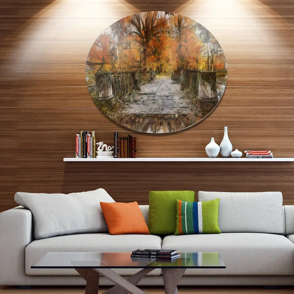 Bring Contemporary Abstraction to your home with this large Circle Metal wall art. This Beautiful Watercolor Autumn Forest Metal Artwork makes it the focal point of any room or office. - White Gloss Coating ensures colors are extra vibrant with light reflection.- Aluminum grade Sheet Metal with 1 inch mounting frame on the back giving the illusion that the artwork is floating on the wall..- Mounting Brackets are included along with instructions.- High Quality Digital images are created directly into a glossy aluminum panel producing a stunning and captivating print into the glossy finish of the metal.- Water, Fire and Scratch resistant HD Aluminum panels.- Looks better than any photo paper and guaranteed to last at least 20 years- Easy to clean with a microfiber cloth. Colors are far superior to regular Canvas Art. - Easy to Hang