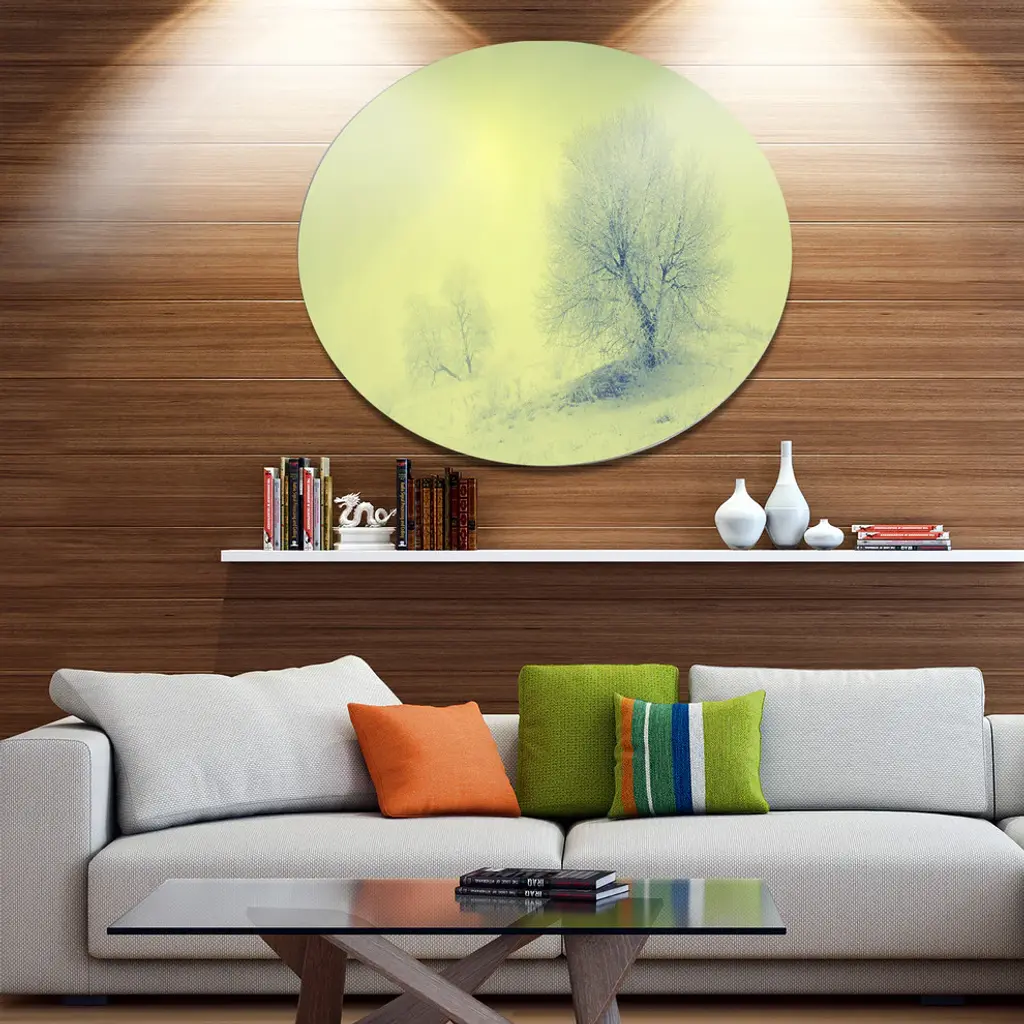 Bring Contemporary Abstraction to your home with this large Circle Metal wall art. This Beautiful Winter Snow Valley Metal Artwork makes it the focal point of any room or office. - White Gloss Coating ensures colors are extra vibrant with light reflection.- Aluminum grade Sheet Metal with 1 inch mounting frame on the back giving the illusion that the artwork is floating on the wall..- Mounting Brackets are included along with instructions.- High Quality Digital images are created directly into a glossy aluminum panel producing a stunning and captivating print into the glossy finish of the metal.- Water, Fire and Scratch resistant HD Aluminum panels.- Looks better than any photo paper and guaranteed to last at least 20 years- Easy to clean with a microfiber cloth. Colors are far superior to regular Canvas Art. - Easy to Hang